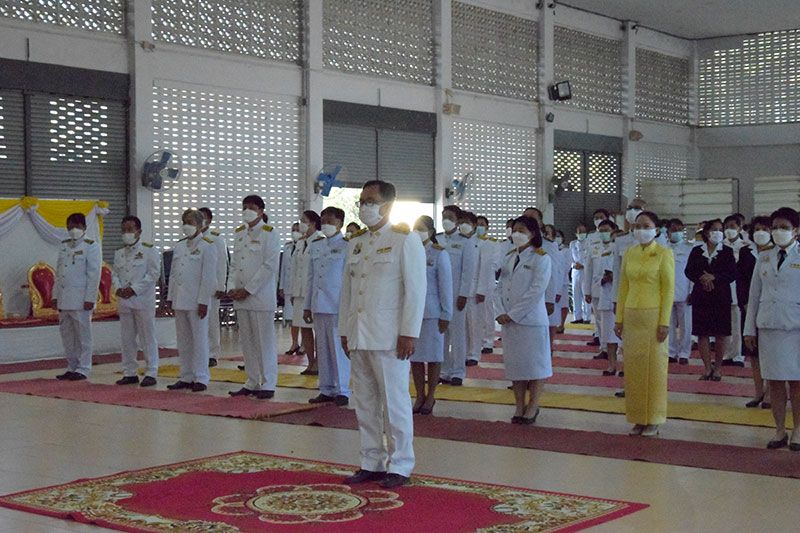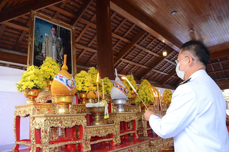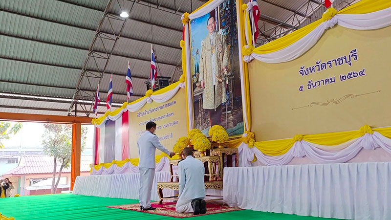 5 ธันวาคม 2564 ที่อาคารจิตรภักดี ร.ศ.222 พระองค์เจ้าทัพ วิทยาลัยเทคนิคราชบุรี อ.เมือง จ.ราชบุรี นายรณภพ เหลืองไพโรจน์ ผู้ว่าราชการจังหวัดราชบุรี นำข้าราชการทุกหมู่เหล่า ร่วมกันแต่งกายด้วยชุดเครื่องแบบข้าราชการในสังกัด และประชาชนทุกหมู่เหล่าแต่งกายด้วยชุดสีเหลือง ร่วมกันประกอบพิธีทำบุญเจริญพระพุทธมนต์ โดยมีพระพรหมมงคลวัชราจารย์ ที่ปรึกษาเจ้าคณะภาค 14-15 วัดศรีสุริยวงศาราม เป็นประทานฝ่ายสงฆ์ และพระภิกษุสงฆ์ทรงสมณศักดิ์รวม 10 รูป สวดเจริญพระพุทธมนต์
