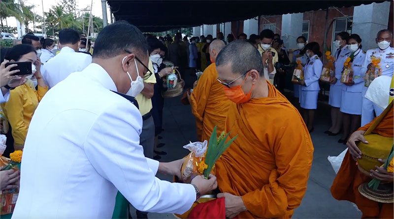 ผู้ว่าราชการจังหวัดราชบุรี นำข้าราชการทุกหมู่เหล่าและพสกนิกรชาวราชบุรี ทำบุญตักบาตร เนื่องในวันคล้ายวันพระบรมราชสมภพ พระบาทสมเด็จพระบรมชนกาธิเบศร มหาภูมิพลอดุลยเดชมหาราช บรมนาถบพิตรวันชาติ และวันพ่อแห่งชาติ 5 ธันวาคม 2564