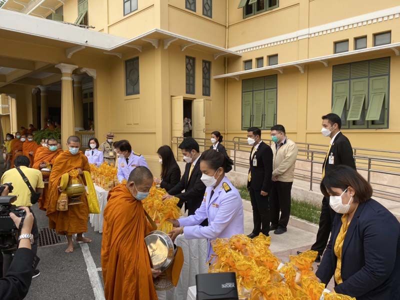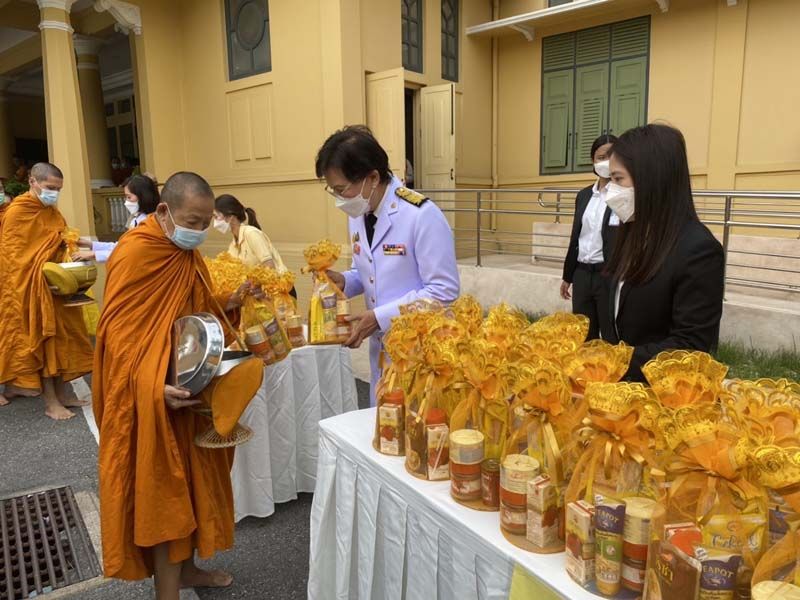 เจ้าหน้าที่กรมการศาสนา อาราชนาพระปริตร พระสงฆ์สวดพระพุทธมนต์ ประธานในพิธี และผู้บริหารระดับสูงที่ได้รับบัตรเชิญ รวม 10 ท่านประเคนจตุปัจจัยไทยธรรม ประธานในพิธี ทอดผ้าไตร จำนวน 10 ไตร พระสงฆ์สดับปกรณ์ พระสงฆ์อนุโมทนา ประธานในพิธี กรวดน้ำ ประธานในพิธี กราบลาพระรัตนตรัย ประธานในพิธี ถวายความเครพพระบรมฉายาลักษณ์ ต่อจากนั้น ประธานในพิธี ผู้บริหาร และบุคลากร ร่วมตักบาตรพระสงฆ์และสามเณรรวม 89 รูป เสร็จสิ้นพิธี