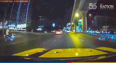 The person who posted the clip said he had driven out of Big C Samut Prakan and was taking the U-turn to pick up his older brother from the Robinson department store on the other side.