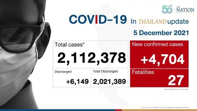 Ministry of Public Health reported on Sunday (December 5) morning that in the past 24 hours there are 4,704 new patients who tested positive for Covid-19, 47 of whom have been found in prisons.