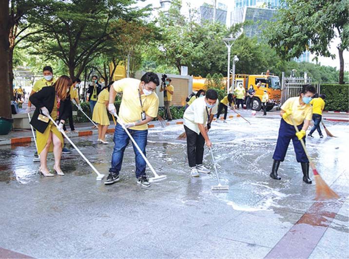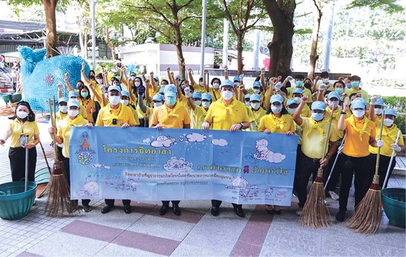 เนื่องในโอกาสวันคล้ายวันพระบรมราชสมภพพระบาทสมเด็จพระบรมชนกาธิเบศร มหาภูมิพลอดุลยเดชมหาราช บรมนาถบพิตร 5 ธันวาคม 2564 กลุ่มทรู โดย วาที เปาทอง หัวหน้าคณะผู้บริหารด้านกฎหมาย พร้อมด้วยพนักงานจิตอาสากว่า100 คน ร่วมแรงร่วมใจทำกิจกรรมบำเพ็ญความดีทำประโยชน์เพื่อสังคม ในโครงการจิตอาสาพระราชทาน “เราทำความ ดี ด้วยหัวใจ” ตามพระบรมราโชบายของพระบาทสมเด็จพระปรเมนทรรามาธิบดีศรีสินทรมหาวชิราลงกรณ พระวชิรเกล้าเจ้าอยู่หัวในโอกาสนี้ สำนักงานเขตห้วยขวาง โดย ธีระชัย อินทร์สุวรรณ์ หัวหน้าฝ่ายรักษาความสะอาด ได้นำเจ้าหน้าที่จิตอาสา มารวมพลังร่วมทำความสะอาด ล้างถนน เก็บขยะ ปรับปรุงทัศนียภาพ บริเวณทางเดินเท้าถนนรัชดาภิเษก หน้าตึกทรู ทาวเวอร์ และคลองยายสุ่น ให้สวยงามสะอาดตายิ่งขึ้น