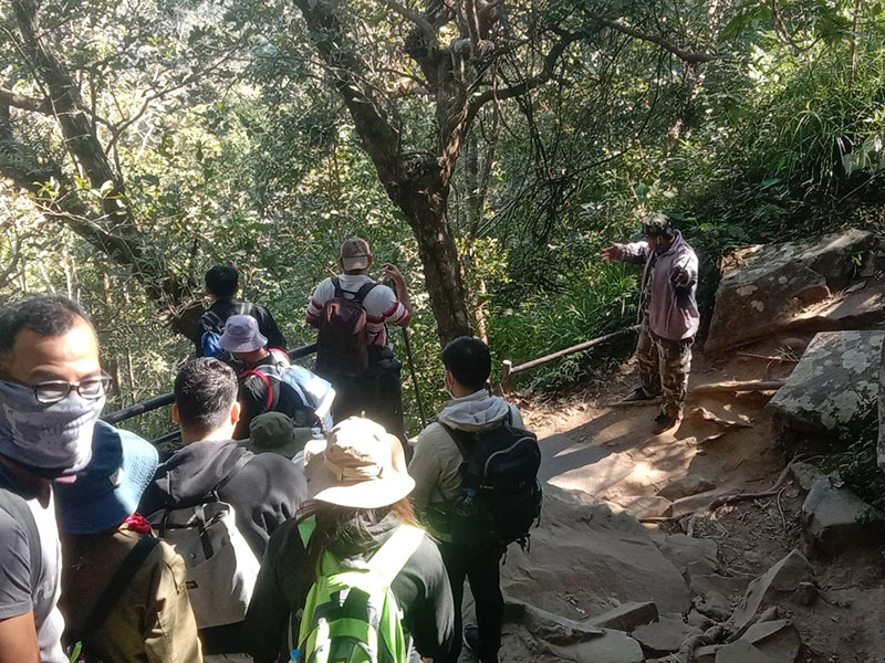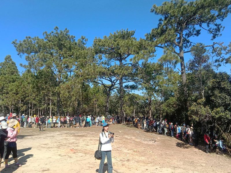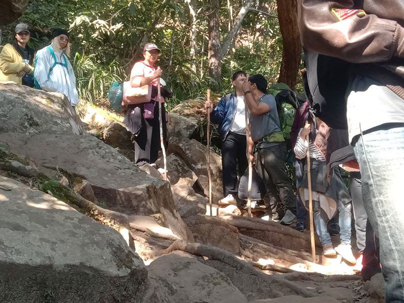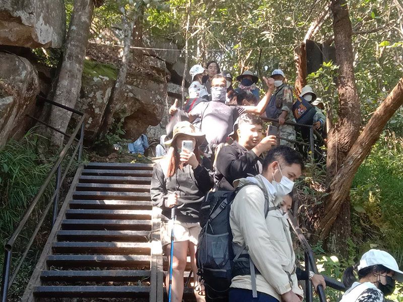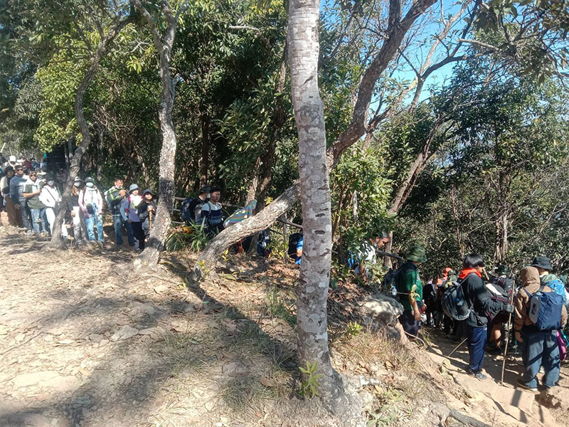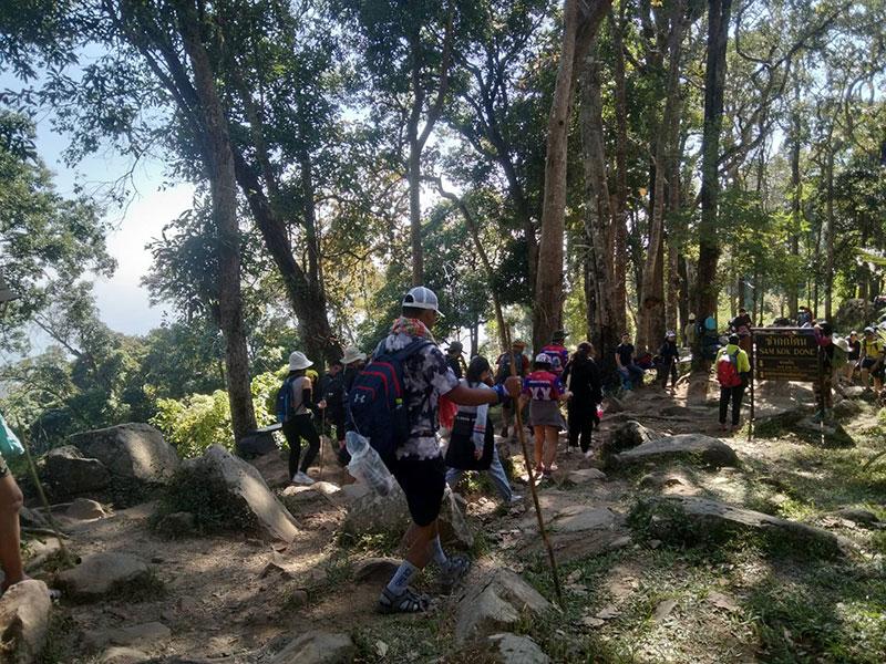 สำหรับอีกบรรยากาศหนึ่งที่มีให้เห็นในช่วงนี้ก็คือบรรยากาศคนติด ซึ่งปกติแล้วจะเห็นรถติดบนถนน แต่ที่ภูกระดึงจะมีเห็นคนติดในช่วงขึ้นลงตามซำผาต่างๆ เนื่องจากบางจุดเป็นภูเขาสูงชันและบันได ทำให้มีคนติด กว่า 200-300 เมตร หรือปีที่ผ่านมา คนเคยติดขึ้นลงกว่า 700 เมตรก็ยังมีให้เห็น. 012
