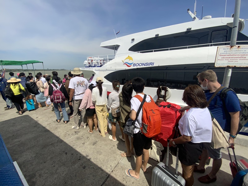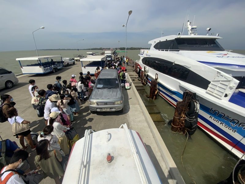 จากวันหยุดยาวช่วงวันที่ 4-6 ธันวาคม 2564 และหยุดชดเชยในวันจันทร์ที่ 6 ธันวาคม 2564 อีก 1 วัน ทำให้มีนักท่องเที่ยวเดินทางมาท่องเที่ยวที่จังหวัดตราด โดบเฉพาะ 3 เกาะหลักของจังหวัดตราด คือ เกาะช้าง เกาะกูด และเกาะหมาก ปรากฏว่า มีนักท่องเที่ยวเดินทางมาลงเรือโดยสารทั้งเรือเฟอร์รี่เรือสปีดโบ๊ท เพื่อไปท่องเที่ยวจำนวนมาก ท่ามกลางอากาศเย็น และท้องฟ้าโปร่ง แดดแรง และคลื่นทะลที่มีลมแรงพัด