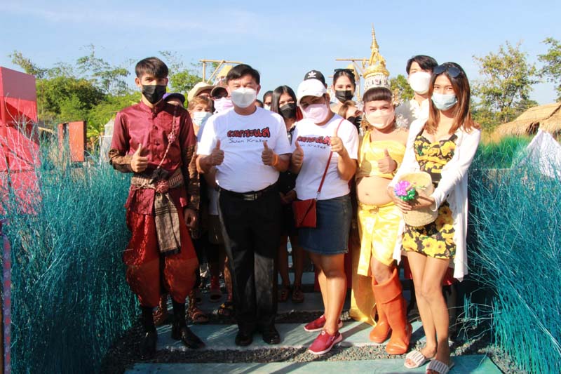 ครอบครัว “ยายกระแส กลั่นสระน้อย” วัย 91 ปี ชาวตำบลบุกระสัง อ.หนองกี่ จ.บุรีรัมย์ ที่เคยเป็นข่าวโด่งดังหยุดหายใจนาน 3 ชั่วโมงแล้วฟื้น จากนั้นใช้ชีวิตอยู่มาได้ต่ออีก 3 เดือนก่อนจะเสียชีวิตอย่างสงบ เมื่อวันที่ 4 ก.ย.2564 ที่ผ่านมา ได้ร่วมกันเปิดแหล่งท่องเที่ยวและจุดเช็คอินแห่งใหม่ชื่อ “สวนกระแส” ตั้งอยู่ริมถนนทางหลวงหมายเลข 24 โชคชัย-เดชอุดม ขาเข้าอำเภอหนองกี่ ก่อนถึงตัวอำเภอเพียง 3 กิโลเมตร รับเปิดเมืองหลังสถานการณ์โควิดเริ่มคลี่คลาย โดยมีนายวิรัตน์ กลิ่นขจร นายอำเภอหนองกี่ เป็นประธานเปิด