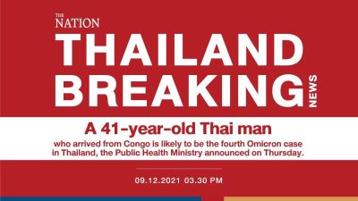 A 41-year-old Thai man who arrived from Congo under the Test & Go programme is likely to be the fourth Omicron case in Thailand, the Public Health Ministry announced on Thursday.