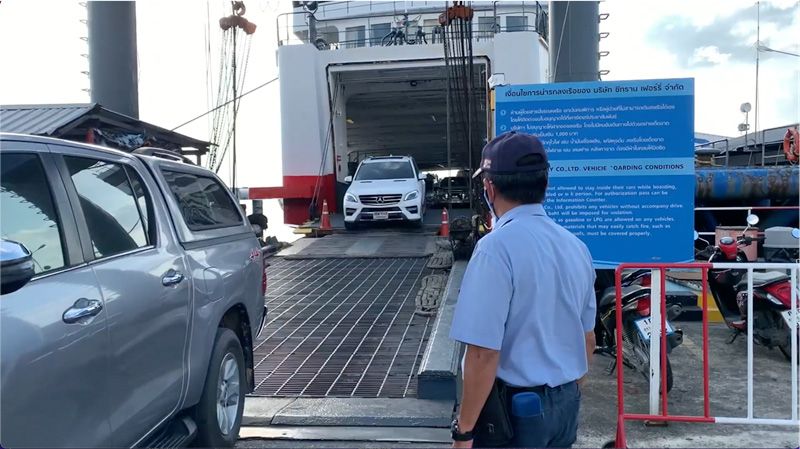 วันที่ 10 ธ.ค.64 บริเวณท่าเทียบเรือเฟอร์รี่ อำเภอเกาะสมุย จังหวัดสุราษฎร์ธานี เรือเฟอร์รี่บริษัท ซีทรานเฟอร์รี่ จำกัด ได้นำรถยนต์พร้อมด้วยผู้โดยสารเดินทางจากอำเภอดอนสัก จังหวัดสุราษฎร์ธานี มายังอำเภอเกาะสมุย โดยพบว่าการเดินทางเข้าเกาะสมุยมีปริมาณผู้โดยสารที่ส่วนใหญ่เป็นนักท่องเที่ยวทั้งคนไทยและนักท่องเที่ยวต่างชาติ โดยเฉพาะนักท่องเที่ยวคนไทยมีจำนวนที่เพิ่มขึ้น การเพิ่มขึ้นของผู้โดยสารเรือเฟอร์รี่พร้อมเพิ่มเที่ยวเรือเพื่อรองรับการเดินทางที่เพิ่มขึ้น