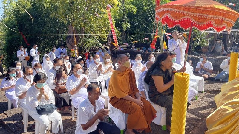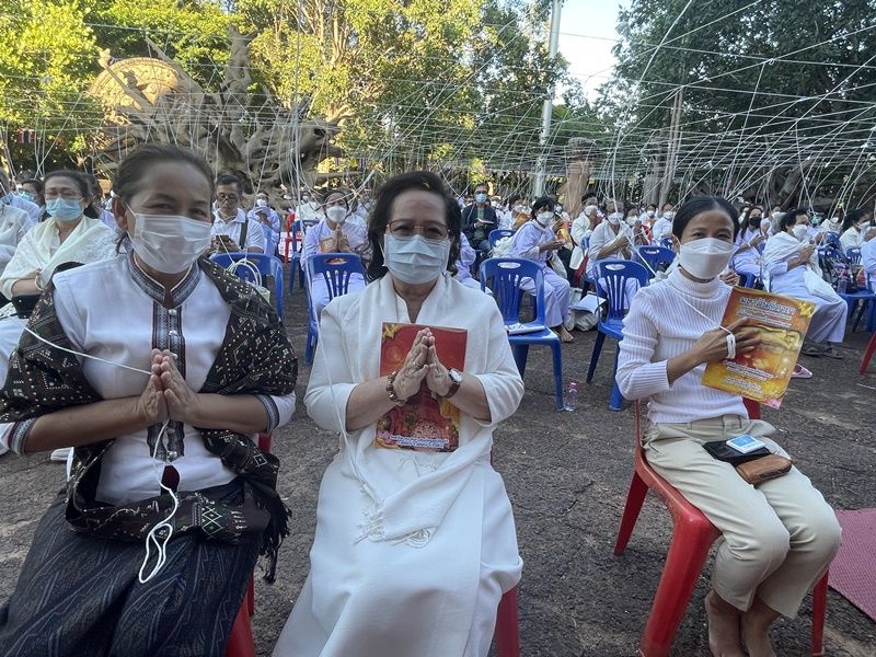 โดยบรรยากาศคึกคักตั้งแต่ช่วงเช้ามีบรรดากลุ่มญาติธรรมชาวพุทธจาก 20 จังหวัด และลูกศิษย์วัดต่างๆ ในภาคตะวันออกเฉียงเหนือ แต่งชุดขาว ร่วมเดินทางมากับคณะสงฆ์ในจังหวัดต่างๆ และลงทะเบียน เพื่อเข้าร่วมสวดมนต์ ที่พระบรมธาตุมหาเจดีย์สังฆนิมิต ท่ามกลางการคุมเข้มมาตรการป้องกันโควิด-19 จากเจ้าหน้าที่สาธารณสุขและ อสม. จนเวลา 15.00 น. พระธรรมดิลก วัดป่าแสงอรุณ ที่ปรึกษาเจ้าคุณภาค 9 ธรรมยุติ ประธานในพิธีเดินทางมาถึง เจ้าคุณหลวงพ่อแผน วัดภูปูนในฝัน อ.สมเด็จ รองเจ้าคณะจังหวัดกาฬสินธุ์ หลวงตาณรงค์ เจ้าอาวาสวัดภูค่าว และพระครูสิทธิวราคม เจ้าอาวาสวัดเวฬวัน อ.สหัสขันธ์ จังหวัดกาฬสินธุ์ ได้เริ่มดำเนินการประกอบพิธี