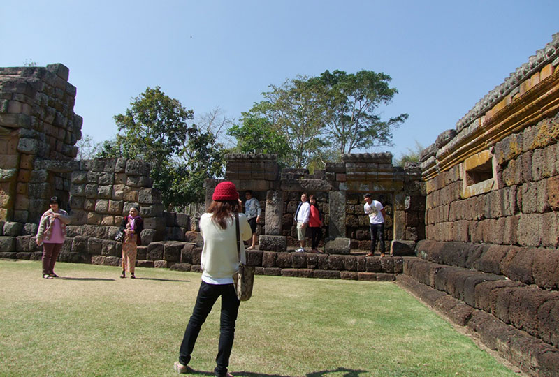 นายภาณุวัฒน์ เอื้อสามาลย์ หัวหน้าอุทยานประวัติศาสตร์พนมรุ้ง จ.บุรีรัมย์ กล่าวว่า หลังจากสภาพอากาศหนาวเย็นลง ประกอบกับทางจังหวัดได้เปิดเมืองท่องเที่ยวแล้ว ช่วงนี้มีนักท่องเที่ยวเดินทางขึ้นมาสัมผัสอากาศหนาวและชมความงดงามปราสาทพนมรุ้งคึกคักมากขึ้น เฉลี่ยวันละกว่า 2,000 คน เพิ่มขึ้นจากช่วงปกติเท่าตัว และคาดว่าจะมีนักท่องเที่ยวขึ้นมาเที่ยวชมเพิ่มขึ้นอย่างต่อเนื่อง. 012
