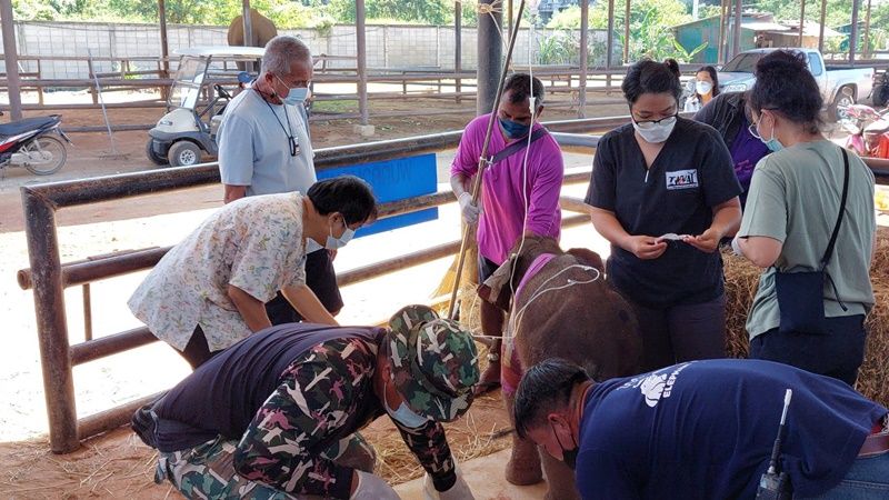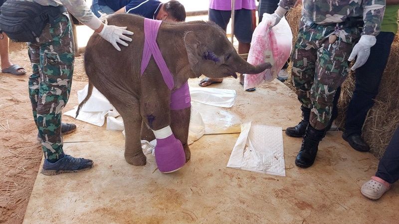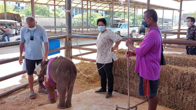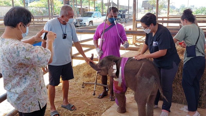 วันที่ 11 ธ.ค.64 นายสัตวแพทย์เผด็จ ศิริดำรง ผู้อำนวยการโรงพยาบาลสัตว์เนินพลับหวานและสัตวแพทย์ประจำสวนนงนุช ได้มาทำการล้างแผลให้กับ “พังฟ้าใส” ลูกช้างป่าเพศเมีย อายุ 3 เดือนที่บาดเจ็บจากการถูกบ่วงรัดและถูกยิง พร้อมกับนายกัมพล ตันสัจจา ประธานสวนนงนุช พัทยา ที่มาดูอาการของ “พังฟ้าใส” อย่างใกล้ชิด โดยหลังจากนายสัตวแพทย์ของสวนนงนุชและกรมอุทยานแห่งชาติ สัตว์ป่า และพันธุ์พืช ได้ร่วมกันทำการผ่าตัดเอากระสุนออกจากขาของพังฟ้าใสออกแล้ว พบว่าวันนี้ พังฟ้าใส เริ่มมีอาการดีขึ้น แต่ยังมีอาการเจ็บปวดจากบาดแผลที่ได้รับการผ่าตัดอยู่และต้องให้น้ำเกลือตลอดเวลา