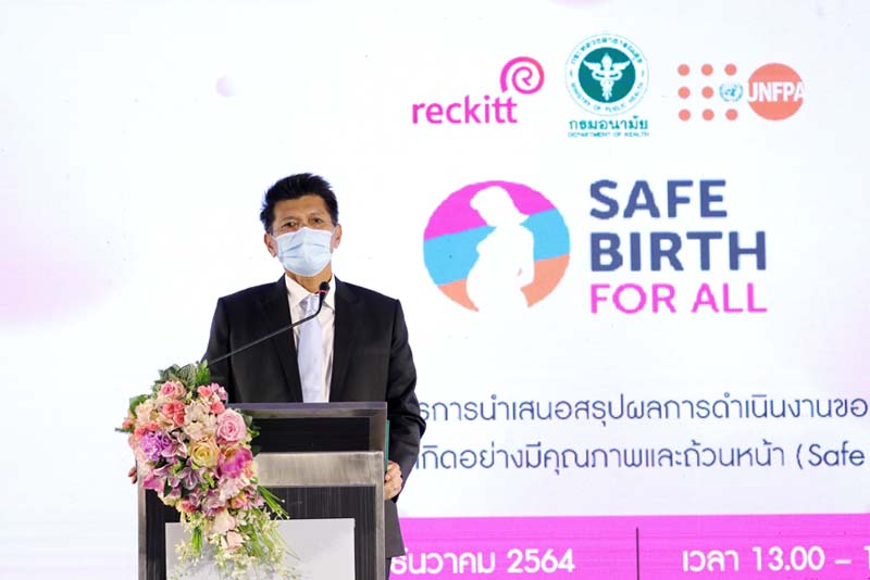 “ที่ผ่านมา กระทรวงสาธารณสุขและกองทุนประชากรแห่งสหประชาชาติ (UNFPA) ได้ร่วมมือดำเนินงานโครงการ การพัฒนาและส่งเสริมการเกิดอย่างมีคุณภาพและถ้วนหน้า (Safe Birth for All) เพื่อส่งเสริมการพัฒนาระบบรายงานและ การให้บริการอนามัยแม่และเด็ก และวัยรุ่นวัยเจริญพันธุ์อย่างมีคุณภาพ ตลอดจนบูรณาการการมีส่วนร่วมของบุคลากรสาธารณสุข บุคลากรวิชาชีพอื่นๆในชุมชนท้องถิ่น ในพื้นที่ชายขอบและห่างไกล ลดปัญหาการตายของมารดาและทารก ระยะเวลา 15 เดือน ตั้งแต่เดือนตุลาคม 2563-ธันวาคม 2564 เพื่อปรับปรุงระบบการให้บริการอนามัยแม่และเด็ก และประสานความร่วมมือภาคีเครือข่ายในการดำเนินงาน โดยการสนับสนุนงบประมาณจาก บริษัท เรกคิทท์ (Reckitt)” รัฐมนตรีช่วยว่าการกระทรวงสาธารณสุข กล่าว