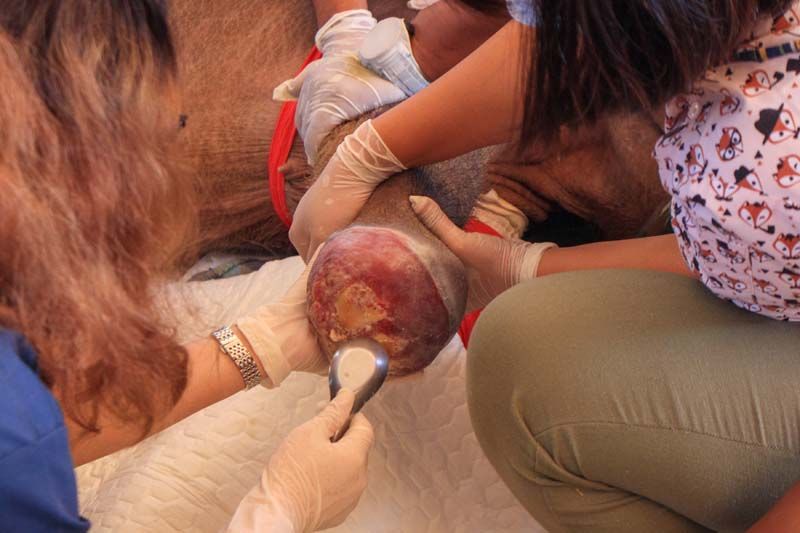 สัตวแพทย์หญิง(สพ.ญ.) สุนิตา วิงวอน สัตวแพทย์กรมอุทยานแห่งชาติสัตว์ป่าและพันธุ์พืช กล่าวว่า ในวันนี้ได้เดินทางมาดูอาการพังฟ้าใสโดยได้ทำการล้างแผล บริเวณตรงที่กระสุนยิงพบว่าแผลเริ่มแห้ง แผลเริ่มดีขึ้น ส่วนขาที่ตัดนั้นก็ได้ทำความสะอาดแผล พร้อมกับเสริมลูกบอลในการลงน้ำหนักเท้าได้และช่วยบรรเทาอาการเจ็บปวด โดยเมื่อคืนทราบว่าช้างฟ้าใสนั้นไม่ได้ร้องเจ็บปวดจากบาดแผลเหมือนเมื่อคืนก่อน เริ่มมีอาการแข็งแรง แต่ยังต้องให้น้ำเกลือ ยาปฏิชีวนะ ยาลดปวด ยาบำรุง และยังต้องเฝ้าเวรยามอย่างใกล้ชิดรวมถึงต้องคอยตรวจวัดค่าไตตลอดเวลา. -008