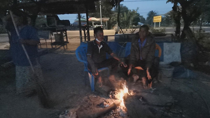 ชาวบ้านที่อาศัยอยู่หมู่บ้านติดชายแดนด้านเขาพระวิหาร อย่างหมู่บ้านภูมิซรอล ต.เสาธงชัย อ.กันทรลักษ์ จ.ศรีสะเกษ ทนความหนาวเย็นไม่ไหว บางบ้านขาดแคลนเครื่องนุ่งห่มกันหนาวผ้าห่มไม่เพียงพอ ต้องตื่นนอนแต่ตอนเช้ามืดลุกขึ้นมาก่อไฟผิงล้อมวงกันผิงไฟ พูดคุยกัน ไม่ใช่เฉพาะคนเท่านั้นที่หนาว สุนัขที่ชาวบ้านเลี้ยงไว้ก็ประสบความหนาวเย็น จนต้องนอนขดตัวอยู่ข้างเจ้าของหาความอบอุ่น.012
