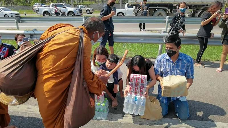 หลวงตาบุญชื่นจาริกธุดงค์เท้าเปล่าจากภูเก็ต เข้าเขตราชบุรีแล้ว ชาวบ้านแห่รอถวายน้ำดื่มแน่นริมถนนเพชรเกษม โดยคืนนี้จำวัดที่วัดดอนทราย อ.ปากท่อ จ.ราชบุรี ก่อนมุงหน้าไปนครพนม จังหวัดบ้านเกิด รวมระยะทาง 1,500 กม.