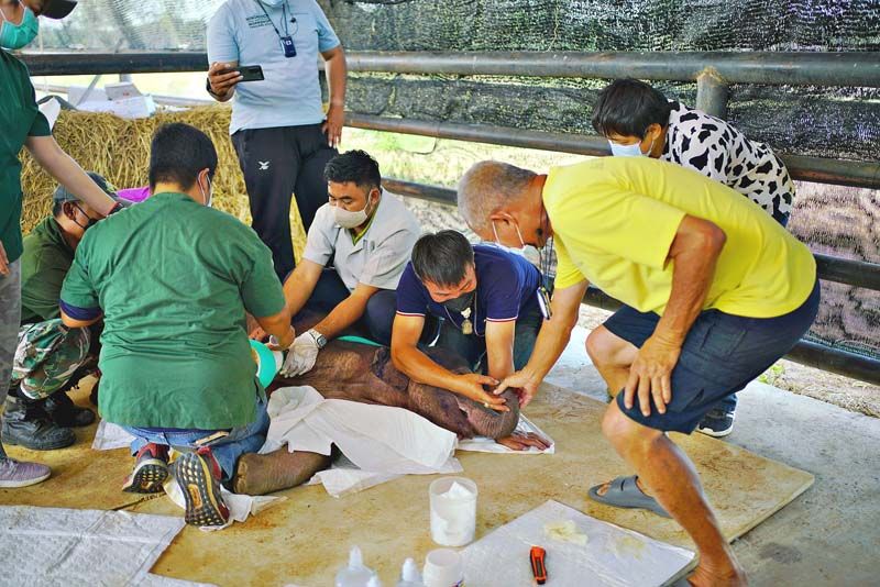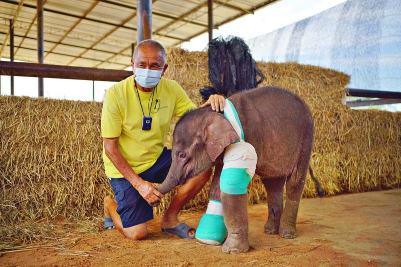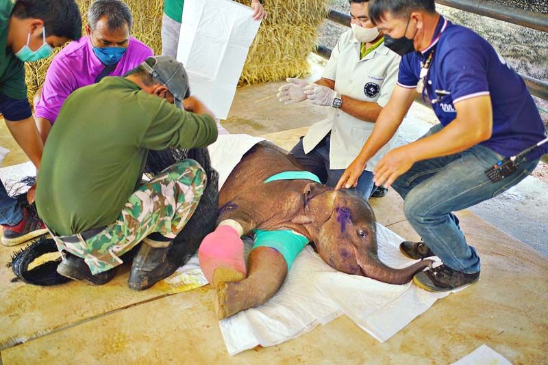 ทางด้านสัตวแพทย์ ที่ทำการรักษา กล่าวว่าจากที่ได้มาทำการล้างแผลทั้งซ้ายขวา พบว่า อาการดีขึ้นมาก ไม่มีอาการเจ็บแผล แต่ยังต้องให้ยาช่วยกล้ามเนื้อให้เพิ่มขึ้น และยังต้องคุมการติดเชื้อและนมที่ได้จากแม่ช้างในสวนนงนุช.-008