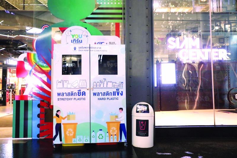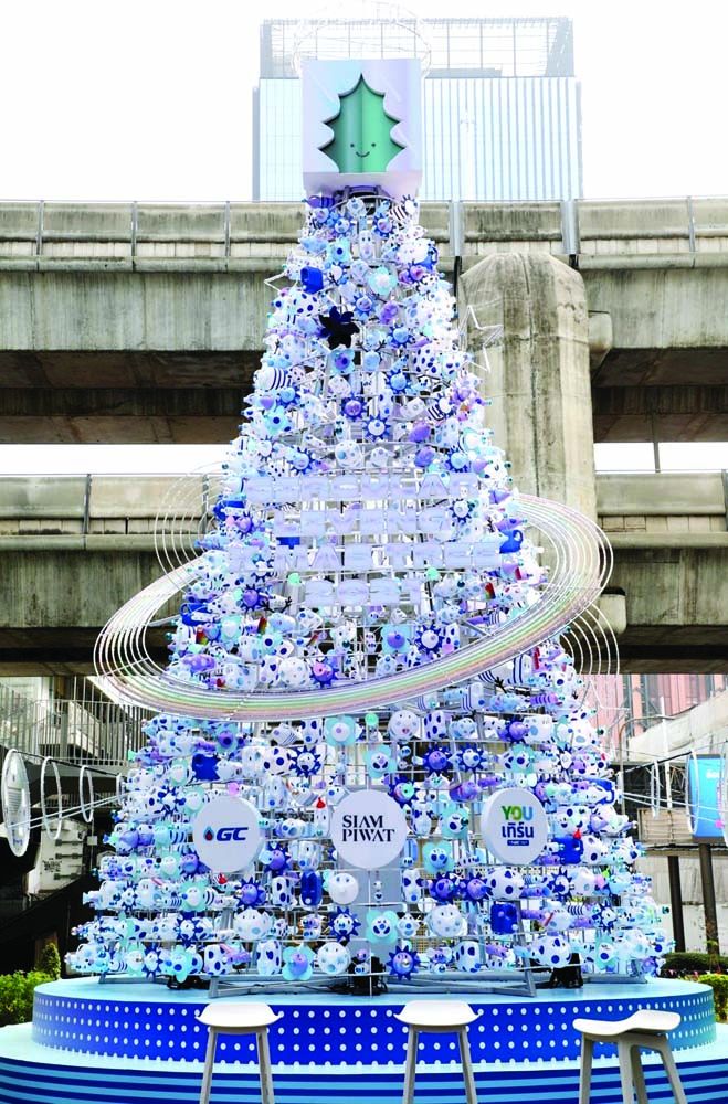 ต้นคริสต์มาสรักษ์โลก “Circular Living X’mas Tree 2021” เติมเต็มและส่งมอบความสุขให้กับทุกคนด้วยดีไซน์ที่มีเอกลักษณ์โดดเด่นไม่เหมือนใครจัดทำขึ้นจากขวดพลาสติกขุ่น (HDPE) ใช้แล้วเช่น ขวดนม ขวดแชมพู นำมาสร้างสรรค์ด้วยไอเดียสุดเก๋ ให้กลายเป็นมนุษย์ต่างดาวหน้าตาน่ารักหลากหลายรูปทรง และนำมาประกอบกันเป็นต้นคริสต์มาส ที่มีความสูง 9 เมตร สูงเด่นเชิญชวนให้ทุกคนมาชมในช่วงเทศกาลแห่งความสุข ภายหลังการจัดแสดง ขวดพลาสติกขุ่นเหล่านี้ สยามพิวรรธน์ และ GC จะนำไปส่งต่อให้กับ YOUเทิร์น ระบบบริหารจัดการพลาสติกใช้แล้วแบบครบวงจรที่ริเริ่มโดย GC เพื่อนำพลาสติกไปรีไซเคิลให้เป็นถังแดงสำหรับทิ้งขยะติดเชื้อ และเพื่อให้ทุกคนได้มีส่วนร่วมรักษ์โลกไปด้วยกัน จึงได้นำเอา YOUเทิร์น Drop Point ถังรับพลาสติกใช้แล้วมาตั้งที่ Siam Paragon และ Siam Discovery เพื่อนำขวดพลาสติกขุ่นไปรวมกับพลาสติกจากต้นคริสต์มาส ส่งมอบให้ YOUเทิร์นนำไปรีไซเคิลเป็นถังขยะติดเชื้อเพื่อใช้ประโยชน์ต่อไป นับเป็นการส่งเสริมการใช้ทรัพยากรอย่างคุ้มค่าสูงสุด