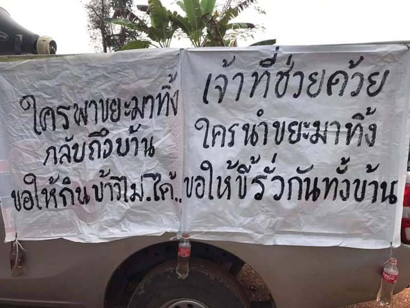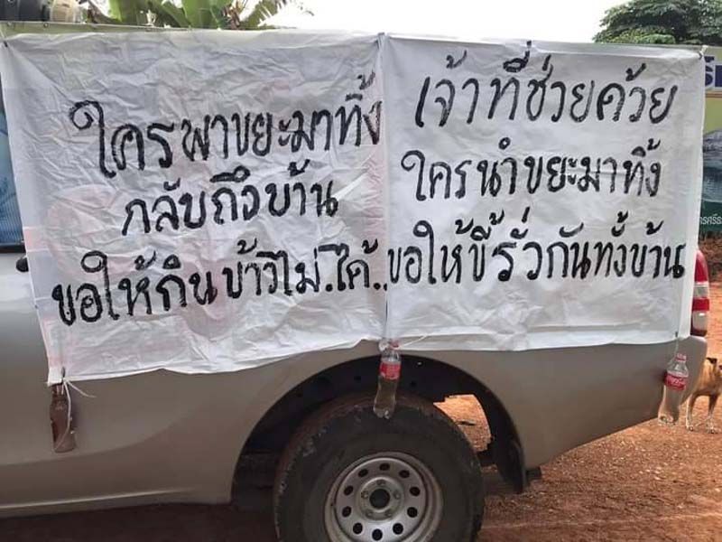 19 ธ.ค.64 นายอุทร ศรเศษตรินทร์ ผู้ใหญ่บ้านหมู่ 6 ต.กุแหระ อ.ทุ่งใหญ่ พร้อมกับลูกบ้าน ทั้งผู้ใหญ่และเด็ก จัดกิจกรรมสร้างจิตสำนึก รักบ้านเกิด “เก็บขยะ สิ่งปฏิกูล“ ที่ถูกพวกมือบอนนำมาทิ้งริมถนนในหมู่บ้านจุฬาภรณ์พัฒนา 3 พร้อมรณรงค์ทิ้งขยะให้เป็นที่เป็นทาง ไม่ทิ้งเรี่ยวราดบนถนน หรือพื้นที่รกร้างริมถนน สร้างความเดือดร้อนให้กับชาวบ้าน โดยมีการนำรถกระบะติดป้ายผ้าที่เขียนด้วยตัวหนังสือสีดำจำนวน 4 ป้าย ประกอบด้วย ป้ายที่ 1 ใครนำขยะมาทิ้ง กลับถึงบ้านขอให้กินข้าวไม่ได้ ป้ายที่ 2 เจ้าที่ช่วยด้วยใครนำขยะมาทิ้ง ขอให้ขี้รั่วกันทั้งบ้าน ป้ายที่ 3 เจ้าที่ช่วยด้วยใครนำขยะมาทิ้ง ชาตินี้อย่าให้ถูกเบอร์ และป้ายที่ 4 เป็นป้ายที่สร้างความตกใจกลัวให้พวกมือบอนที่เป็นผู้ชาย เป็นป้ายเขียนว่า “ เจ้าที่ช่วยที ใครพาขยะมาทุ้ม ขอให้…ใข่ตาย..ก่อนกำหนด “ จากนั้นนำป้ายทั้ง 4 ป้ายปิดข้างรถกระบะให้ชาวบ้านและเด็กขึ้นท้ายกระบะขับรณรงค์ตามถนนในหมู่บ้านจุฬาภรณ์พัฒนา 3 และหมู่บ้านใกล้เคียง ซึ่งสร้างความแปลกใจให้กับชาวบ้านที่อาศัยสองฝั่งถนน รวมทั้งชาวบ้านที่ขับรถสัญจรบนถนน ต่างถ่ายภาพแล้วนำ-ไปลงโกโซเชียลกันจำนวนมาก