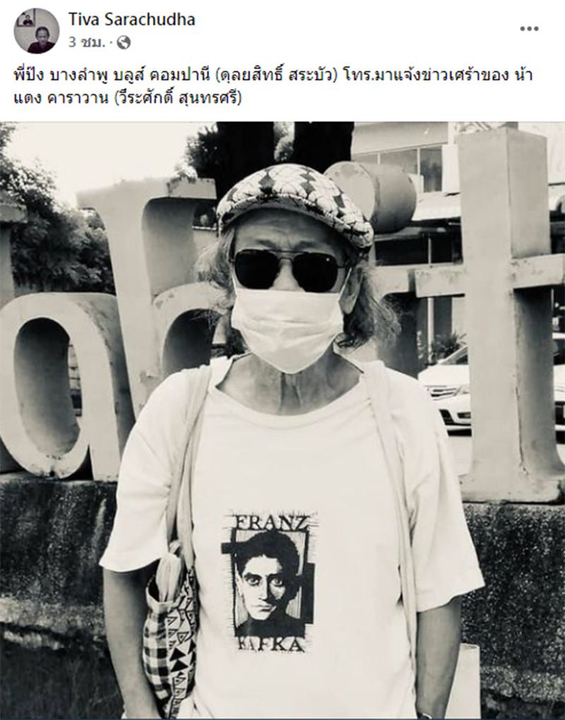 ขณะที่ สุรชัย จันทิมาธร หรือ “หงา คาราวาน” ศิลปินแห่งชาติ โพสต์พร้อมข้อความในเฟซบุ๊กว่า “นักรบ ย่อมโดดเดี่ยว อยู่อย่างโดดเดี่ยว ตายอย่างโดดเดี่ยว แด่เพื่อน~วีระศักดิ์ สุนทรศรี”