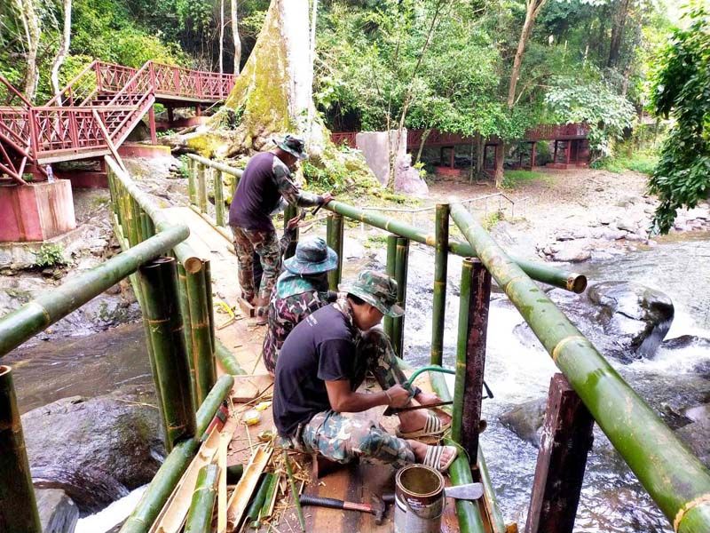 20 ธันวาคม 2564 นายพิชัย วัชรวงษ์ไพบูลย์ ผู้อำนวยการสำนักบริหารพื้นที่อนุรักษ์ที่ 3 (สบอ.3) สาขาเพชรบุรี เปิดเผยว่าได้สั่งการให้นายอิทธิพล ไทยกมล หัวหน้าอุทยานแห่งชาติแก่งกระจาน นำเจ้าหน้าที่อุทยานทำความสะอาดปรับปรุงภูมิทัศน์โดยรอบที่ทำการหน่วยพิทักษ์อุทยาน และบริเวณน้ำตกป่าละอู แหล่งท่องเที่ยวดังใน ต.ห้วยสัตว์ใหญ่ อ.หัวหิน จ.ประจวบคีรีขันธ์ โดยมีการตกแต่งกิ่งไม้ ซ่อมแซมสะพานให้แข็งแรง ขึงเชือกกั้นแนวขอบถนนทางเข้าและบริเวณทางขึ้นน้ำตกเพื่อความปลอดภัยของนักท่องเที่ยว