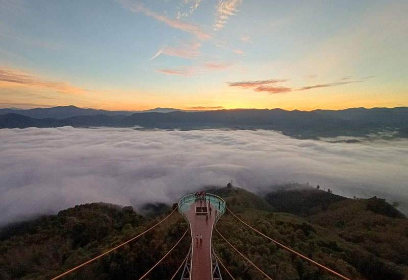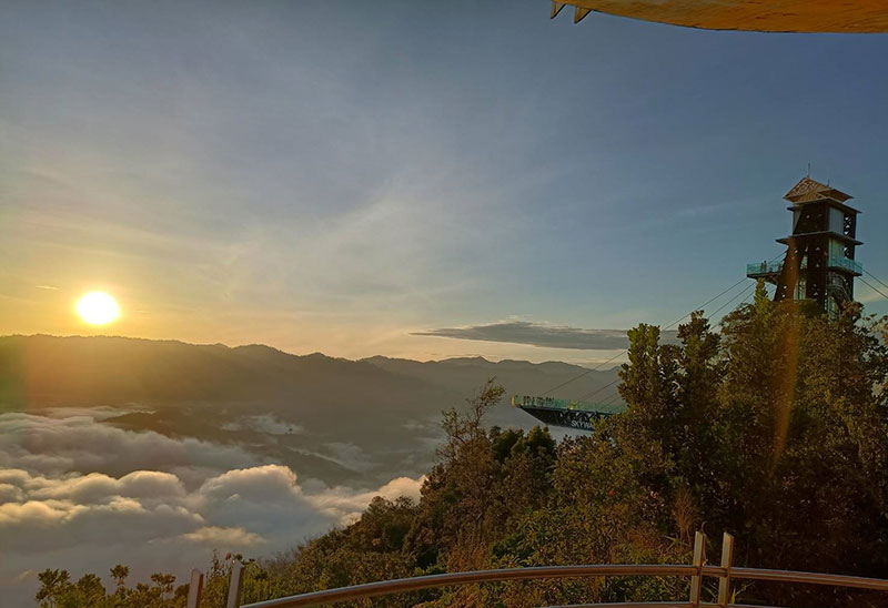 นักท่องเที่ยวยังคงแห่เดินขึ้นเขาไมโครเวฟ ชมวิวพระอาทิตย์ขึ้น พร้อมชมทะเลหมอกที่สวยงาม บนสกายวอลค์ที่ยาวที่สุดในในอาเซียน