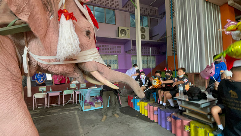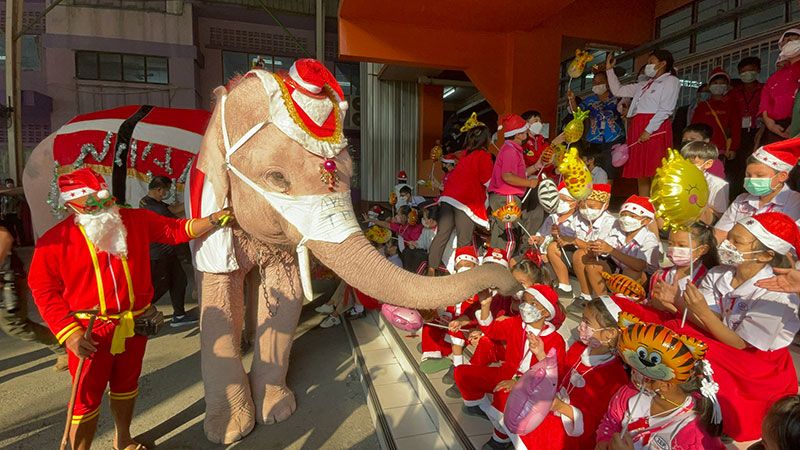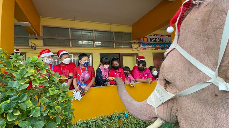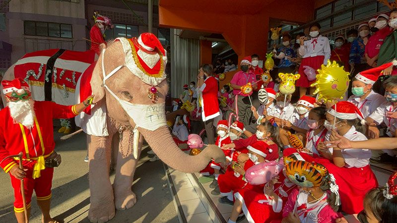เมื่อวันที่ 24 ธันวาคม 2564 นายอิทธิพันธ์ ขาวละมัย ผู้จัดการวังช้างอยุธยาแลเพนียด พร้อมด้วยดร.สมพล รัชตพิมลชัย ประธานอำนวยการเจ้าหน้าที่การตลาดศูนย์การค้าอยุธยาซิตี้พาร์ค ร่วมกันจัดกิจกรรมเทศกาลคริตสมาส โดยนำช้าง 5 เชือกไปแจกเจลแอลกอฮอล์และหน้ากากอนามัยให้กับนักเรียนที่โรงเรียนจิระศาสตร์วิทยา โดยมีดร.สุธาทิพย์ ไชยรัตน ผ.อ.และดร.ปฐมพงศ์ ศุภเลิศ ผจก.โรงเรียนให้การต้อนรับ ซึ่งครั้งนี้แตกต่างจากทุกครั้ง ทางวังช้างอยุธยาแลเพนียดได้นำการแสดงมโนราห์มาร่ายรำด้วย