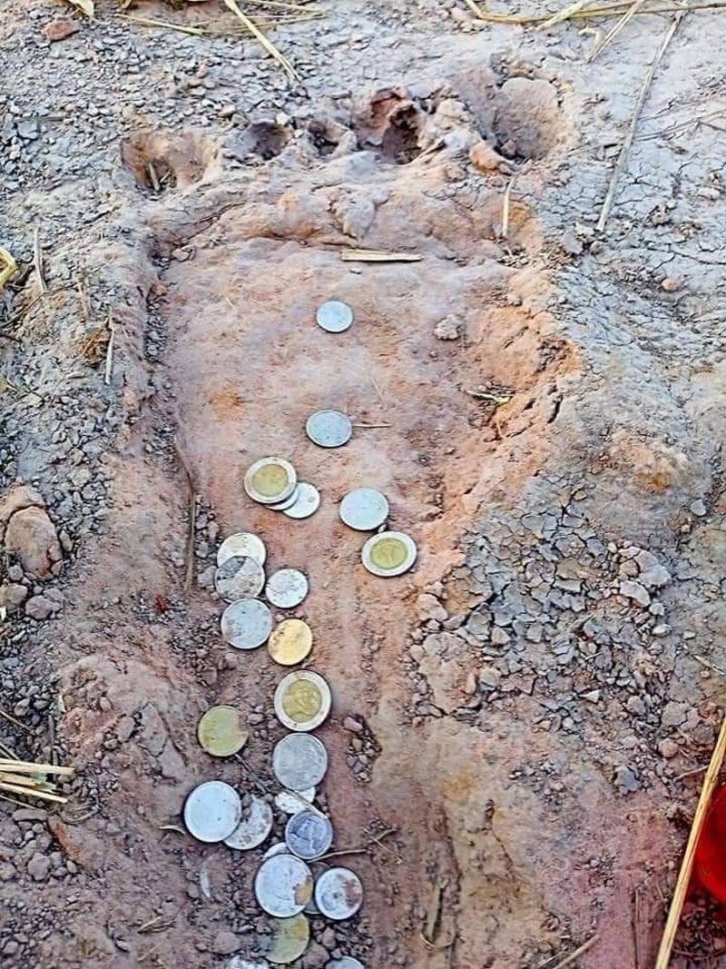 ชาวบ้านแห่ขอโชคลาภ รอยเท้าปริศนาขนาดใหญ่กลางทุ่งนา จ.มหาสารคาม เชื่อเป็นมนุษย์โบราณ