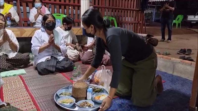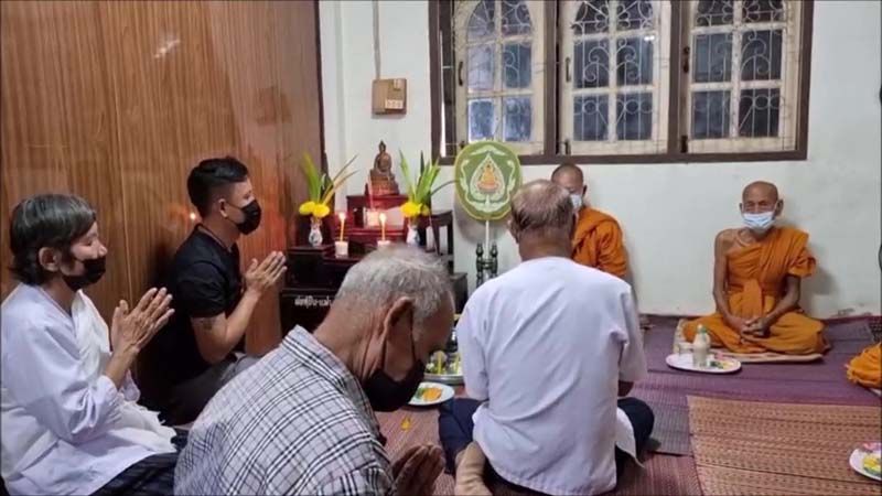 ต่อมาเวลา 18.00 น.ผู้สื่อข่าวเดินทางไปที่บ้านเลขที่ 114 หมู่ 17 บ้านโคกพัฒนา ซึ่งเป็นสถานที่จัดงานศพนายสุรดิษ โดยวันนี้ญาติๆ และลูกสาวได้ทำพิธีฌาปนกิจศพเผานายสุรดิษ ไปเรียบร้อยแล้วตั้งแต่เวลา 14.00 น.เพราะตายผิดธรรมชาติและจะไม่เก็บร่างเอาไว้นาน โดยค่ำวันนี้ นางวรรณิศา ศาลาคำ ลูกสาว และชาวบ้าน ได้นิมนต์พระภิกษุ จำนวน 11 รูป มาทำพิธีสวดเจริญพุทธมนต์ในงานศพ และจะตั้งมุงคุณเอาไว้ 3 วัน ก่อนจะเก็บอัฐิ และได้เตรียมสำรับข้าวเอาไว้ให้พ่อด้วย มีแจ่วขี้ปลา แกงเห็ด ที่พ่อชอบมากด้วย โดยลูกสาวบอกสั้นๆ อาหารที่พ่อชอบก็จัดให้แล้ว เพราะพ่อเป็นคนง่ายๆ อยู่สบาย