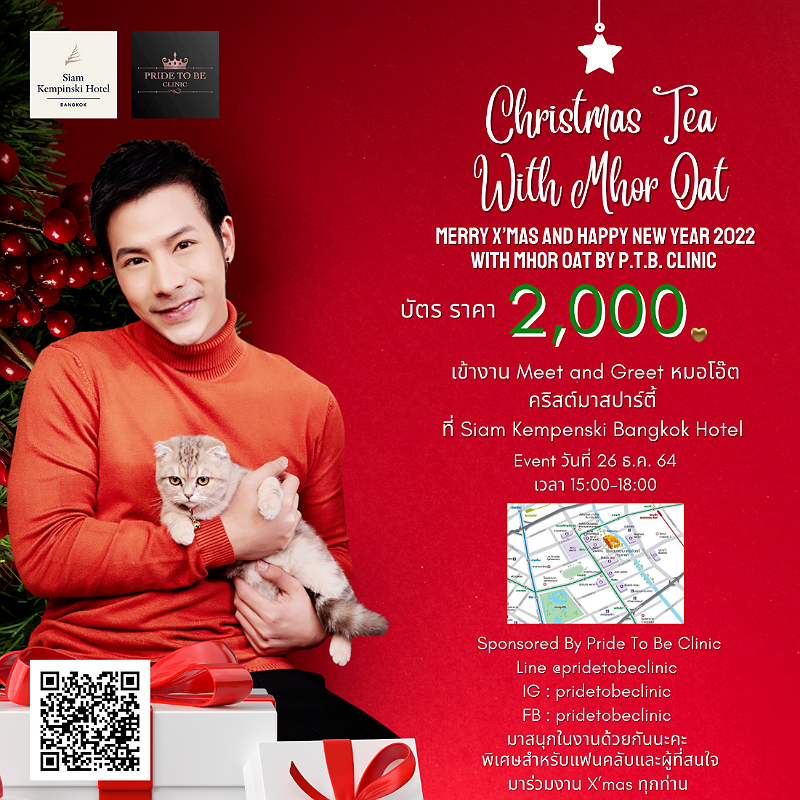 คุณวรวิสาข์ โปตระนันทน์ ผู้บริหาร PRIDE to Be Clinic เปิดเผยว่า การทำธุรกิจในยุคนี้ต้องคืนกำไรให้กับลูกค้า สังคม แฟนคลับด้วย ซึ่ง PRIDE to Be คลินิก ก็ได้ทำมาโดยตลอด ล่าสุดขอเชิญร่วมงาน ลูกค้า แฟนคลับ คนที่สนใจ เข้าร่วมงาน“Christmas Tea with Mhor Oattt Merry X’mas and Happy New Year 2022 with Mhor Oattt by P.T.B. Clinic