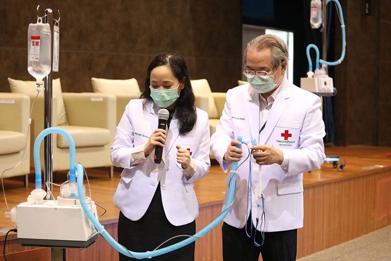 รศ.พญ.นฤชา จิรกาลวสาน แพทย์ผู้เชี่ยวชาญโรคปอด หน่วยโรคระบบการหายใจและภาวะวิกฤต กล่าวว่า“จากสถิติพบว่ามีผู้ป่วยโควิด-19มีอาการปอดอักเสบรุนแรงมากกว่าร้อยละ 15 ของผู้ป่วยโควิด-19 ทั้งหมด ซึ่งจำเป็นต้องใช้เครื่องบำบัดโรคระบบทางเดินหายใจอัตราการไหลสูง ที่มีอัตราการไหลสูงกว่าอยู่ที่ 40-60 ลิตรต่อนาทีโดยพบว่าสามารถลดอัตราการเสียชีวิตและอัตราการใส่ท่อช่วยหายใจลงได้ทำให้อาการเหนื่อยลดลง ซึ่งหลังจากที่ได้ผลิตเครื่องต้นแบบ Chula HFNCได้นำเครื่องต้นแบบมาทดสอบในอาสาสมัครปกติทั้งหมด 5 คน และผู้ป่วยโควิด-19 ที่มีอาการปอดอักเสบที่รักษาตัวในห้อง ICU ทั้งหมด 10 คน ซึ่งผลการรักษาพบว่าได้ผลดีมาก ไม่แตกต่างกับเครื่องมาตรฐานที่นำเข้าจากต่างประเทศ จึงช่วยประหยัดค่าใช้จ่ายจากการนำเข้าเครื่องให้อากาศที่มีอัตราการไหลสูงได้ถึง 150,000 บาท ต่อ 1 เครื่อง ซึ่งความสำเร็จในครั้งนี้จะเกิดขึ้นไม่ได้หากไม่ได้รับความร่วมมือร่วมใจจากประชาชนชาวไทยและองค์กรต่างๆ ที่ร่วมบริจาคผ่านมูลนิธิคณะแพทยศาสตร์ จุฬาฯ รวมทั้ง NIA ที่ได้ให้เงินสนับสนุนเพิ่มเติม ทำให้เราสามารถแจกจ่ายเครื่อง Chula HFNC ไปยังโรงพยาบาลที่ขาดแคลนทั่วประเทศโดยไม่มีค่าใช้จ่ายได้ รวมทั้งสิ้น 500 เครื่อง ซึ่งนับเป็นการส่งต่อการให้ที่ยิ่งใหญ่ของวงการสาธารณสุขไทย ท่ามกลางสถานการณ์การแพร่ระบาดเช่นในปัจจุบัน