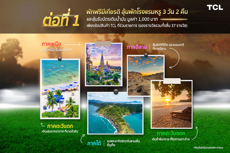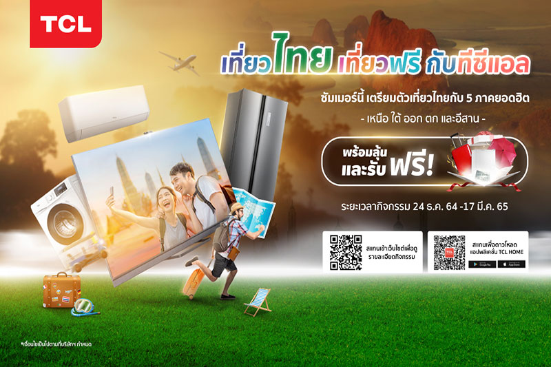 ทีซีแอล แบรนด์ผลิตภัณฑ์เครื่องใช้ไฟฟ้ามาตรฐานระดับโลก จัดกิจกรรมตอบแทนลูกค้าด้วยแคมเปญ “เที่ยวไทยเที่ยวฟรีกับทีซีแอล” ลุ้นรับที่พักโรงแรมหรู 3 วัน 2 คืนฟรี ครบ 5 ภาค พร้อมรับของรางวัลมากมาย เริ่ม 24 ธันวาคมนี้ ถึง 17 มีนาคม 2565