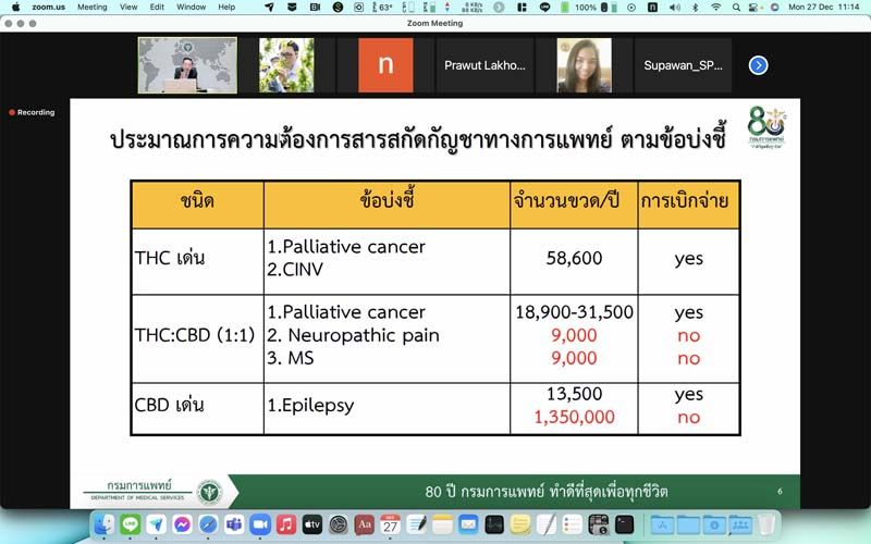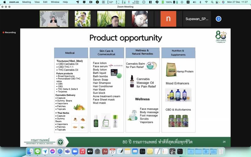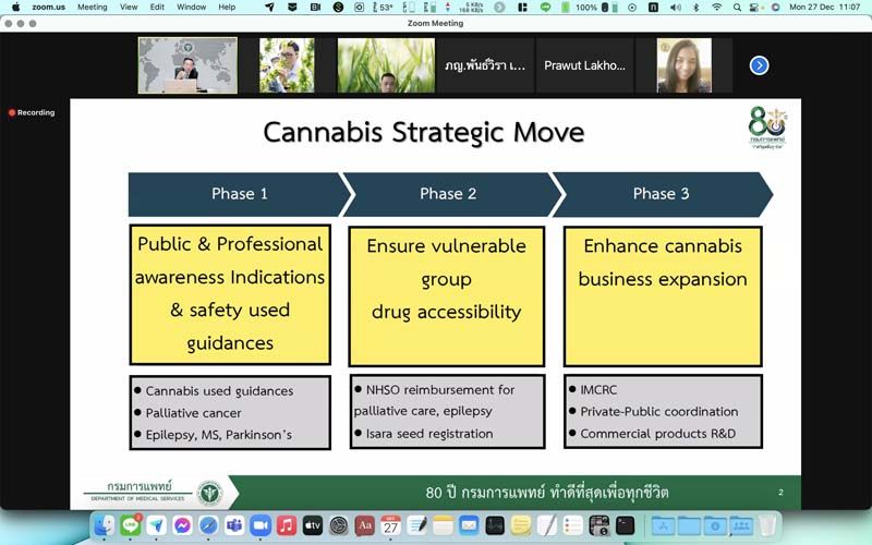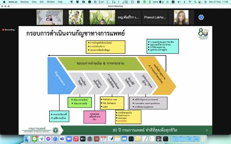 27 ธันวาคม 2564 การประชุมคณะกรรมการขับเคลื่อนนโยบายกัญชาเสรีทางการแพทย์ ครั้งที่ 4/2565 เมื่อวันที่ 27 ธ.ค. 2564 โดยมี ดร.ภก.อนันต์ชัย อัศวเมฆิน คณะที่ปรึกษารัฐมนตรีว่าการกระทรวงสาธารณสุข เป็นประธานในการประชุม พร้อมด้วยผู้บริหาร และหน่วยงานภายในและภายนอกที่ทำงานด้านกัญชาและกัญชง ในการประชุมวันนี้มีประเด็นสำคัญในการขับเคลื่อนกัญชา กัญชง