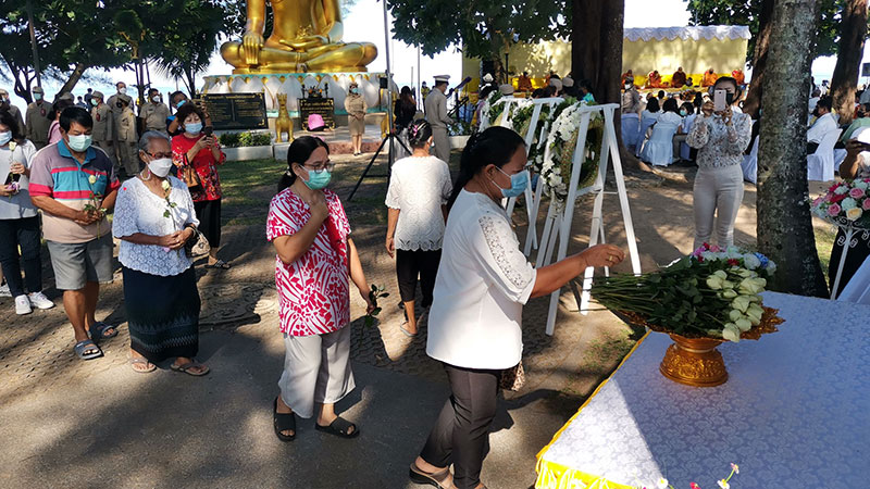 พร้อมกันนี้ได้ร่วมกันวางพวงมาลา และช่อกุหลาบขาว ที่หน้ารูปคุณพุ่ม เจนเซ่น พร้อมทั้งยืนไว้อาลัยแก่ผู้ล่วงลับจากเหตุการณ์สึนามิถล่ม สำหรับช่วงเย็นของวันนี้( 26 ธันวาคม 2564) จะมีการจุดเทียนรำลึกถึงผู้เสียชีวิตจากเหตุการณ์ดังกล่าว โดยให้ผู้เข้าร่วมกิจกรรมคำนึงถึงระยะห่าง กำหนดไว้ผู้เข้าร่วมไว้ไม่เกิน 100 คน เพื่อป้องกันการแพร่ระบาดของสถานการณ์โรคโควิด 19