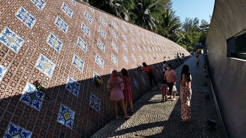 นายธรรมนูณ จงไกรจักร อายุ67 ปี 25/24 ม.2 บ้านน้ำเค็ม ต.บางม่วง อ.ตะกั่วป่า จ.พังงา อาขีพประมง ชาวบ้านที่ประสบภัยและสูญเสีย กล่าวว่า ยังคงอยู่ในความทรงจำกับเหตุการณ์ที่ผ่านมาแล้วถึง 17 ปี กับความสูญเสียในครั้งนั้น เมื่อถึงวันที่ 26 ธันวาคมของทุกปี ก็จะนำอาหารใส่ปิ่นโตดอกไม้พวงมาลัยเพื่อที่จะมาทำบุญอุทิศส่วนกุศลแก่ผู่ที่จากไป และรำลึกถึงผู้ที่จากไป ซึ่งครอบครัวตนเองนั้นได้เสียชีวิตทั้งหมด 6 คน. 012
