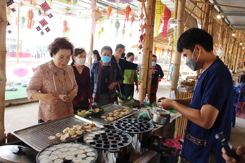 สำหรับบรรยากาศมีนักท่องเที่ยวแวะเข้ามาซื้อขนมครกกันอย่างคึกคัก ส่วนใหญ่ชอบแบบราดหน้าด้วยซอสมะเขือเทศ หลายคนชิมกันแล้วบอกว่าอร่อยถูกปาก บางคนบอกว่าเคยกินครั้งแรกอร่อยดี แต่ภาษาไท – ยวน บอกว่าขนมครกร้านนี้ “สุดล้ำลำ” หมายถืง “อร่อยมาก ๆ” ไม่เหมือนกับขนมครกทั่วไป