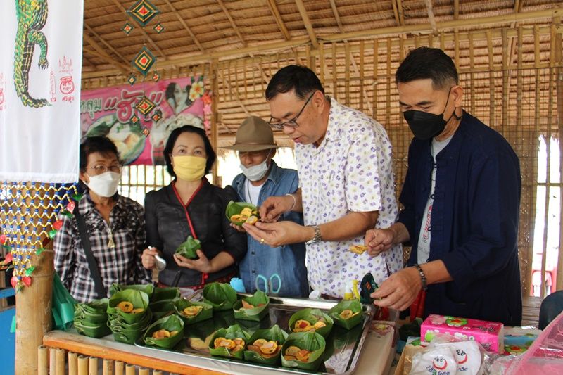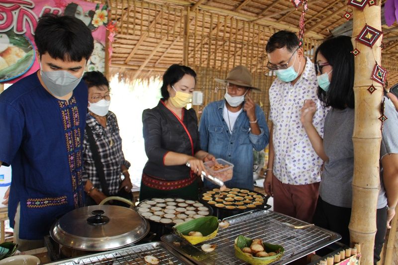 นักท่องเที่ยวที่เดินทางไปเที่ยวต๋าหลาดไท-ยวนวัดนาหนอง ตำบลดอนแร่ เมืองราชบุรี ต่างให้ความสนใจขนมครกไข่เสียบไม้ไท-ยวนโรยหน้าปูอัด ไส้กรอก หมูยอ ใส่กระทงใบตอง รสชาติแปลกกลมกล่อม ถูกปากที่ร้าน”ตกหลุมฮัก”จนแน่นร้าน จนหลายคนพูดเป็นภาษาไท-ยวนออกมาว่า “สุดล้ำลำ” หมายถืง “อร่อยมากๆ”