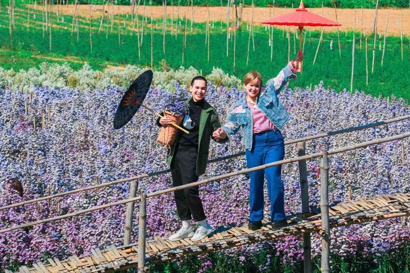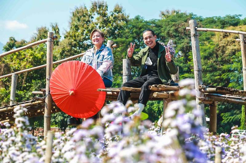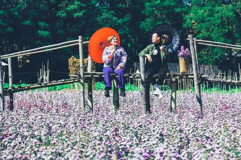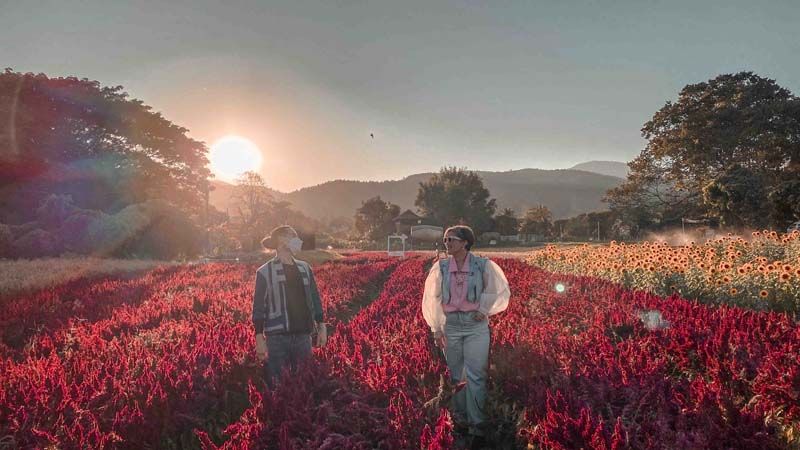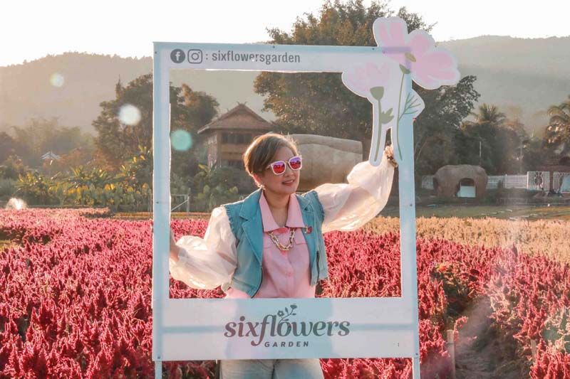 จากนั้นไปกันต่ออีกหนึ่งสวนที่ “Six Flowers Garden” สวนดอกไม้ที่ไม่มีใครเหมือนบนพื้นที่ทั้งหมด 8 ไร่ เพราะที่นี่มีแปลงดอกซีโลเซีย ที่ปลูกเป็นแนวโค้ง ไล่สีเป็นแถวๆ ทั้งสีแดง เหลือง ชมพู แข่งกันบานสะพรั่ง โซนถ่ายรูปก็เยอะ พร็อพก็มีให้ หากมาช่วงเย็นจะได้สัมผัสกับอีกหนึ่งไฮไลท์ นั่นก็คือ สามารถดูพระอาทิตย์ตกหลังภูเขาของอุทยานแห่งชาติดอยสุเทพ-ปุยได้ด้วยสวนใครเป็นคอคาเฟ่ ที่นี่ก็มีโซนคาเฟ่น่ารักๆ สไตล์รักษ์โลก เพราะภายในตกแต่งด้วยต้นไม้ฟอกอากาศ ใครได้มาก็ต้องขออยู่นานๆ จุดเช็คอินสุดท้ายของทริปที่ อ.แม่ริม อยู่กันที่ “บ้านนาฟลาวเวอร์” ถือเป็นสวนดอกไม้แห่งแรกๆ ของเชียงใหม่ที่เปิดให้เข้าชมได้พอเข้ามาจะละลานตาไปด้วยแปลงดอกไม้หลากสายพันธุ์ไม่ว่าจะเป็นดอกมากาเร็ต คัตเตอร์ แดงซีโลเซีย มีโซนถ่ายรูปเยอะ พร็อพก็มีให้แบบแน่นๆ เรียกว่าถูกใจสายโพสต์หนาวนี้ยังไม่รู้จะไปไหน ลองไปตามพิกัด เที่ยวละไมไทยแลนด์เวิลด์ แล้วจะว้าว…!!