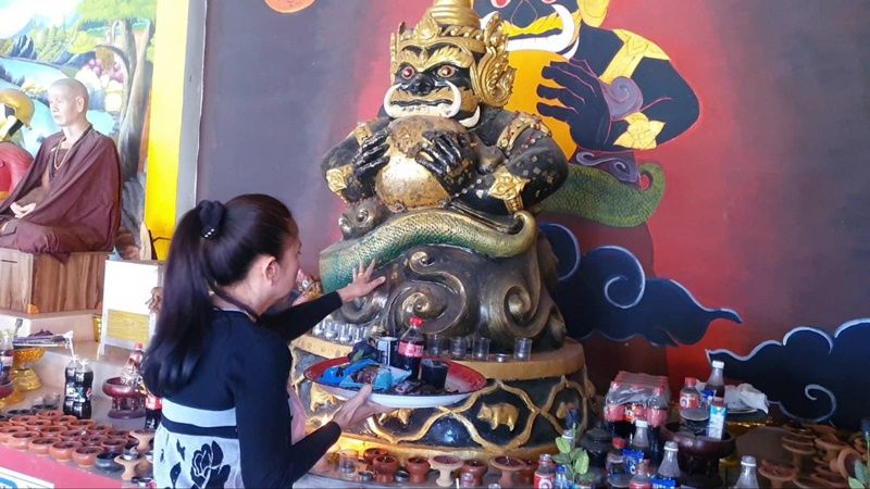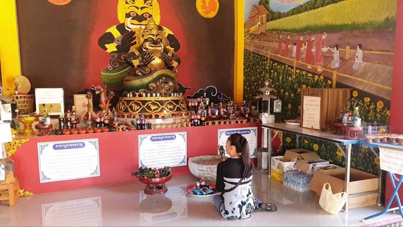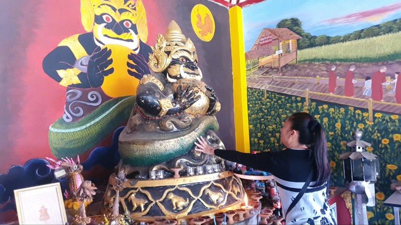 วันที่ 30 ธ.ค.64 ได้มีชาวบ้านทั้งในและนอกพื้นที่จังหวัดพะเยา พากันนำของดำ 8 อย่างเข้ามาเซ่นไหว้ราหู อมจันทร์ ภายในศาลาราหู วัดโสมนัสตุ้มท่า ตำบลท่าจำปี อำเภอเมือง จังหวัดพะเยา เพื่อขอพรรับโชคและความเป็นสิริมงคลเนื่องในโอกาสส่งท้ายปีเก่า 2564 และต้อนรับปีใหม่ 2565