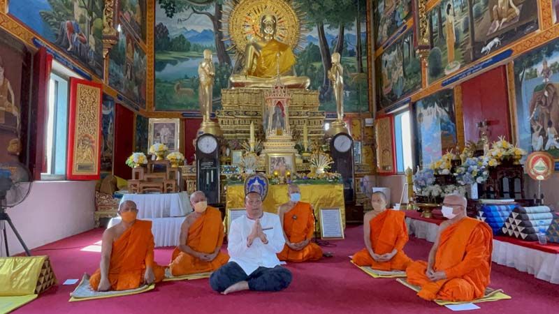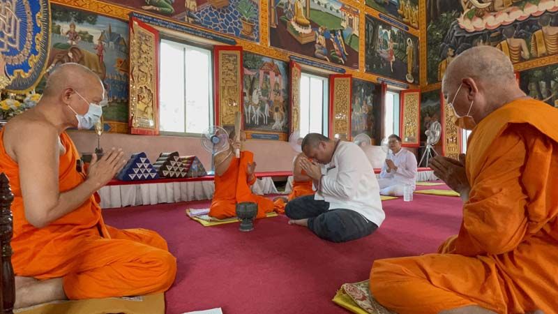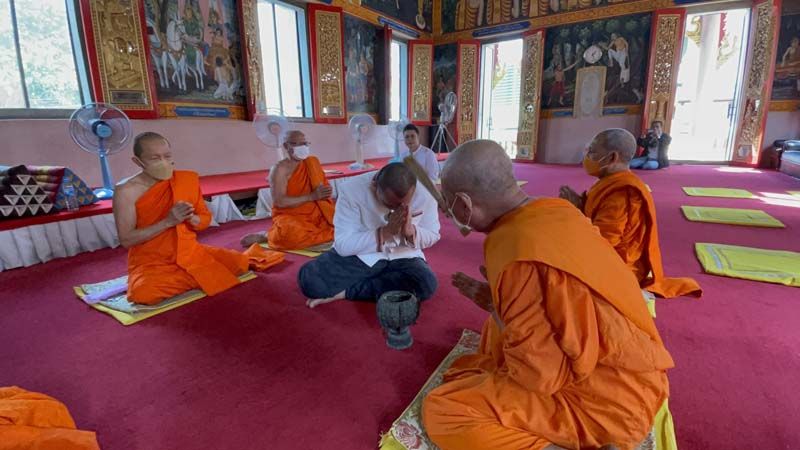 โดยนายสมปอง สวมเสื้อสีขาวทรงแขนกระบอก ลายขลิบดอกแก้ว โดยได้กล่าวว่า การลาสึกนั้น ง่ายนักการบวชนั้นยากมาก ก่อนจะสวดมนต์และรับพร ในการดำเนินชีวิต