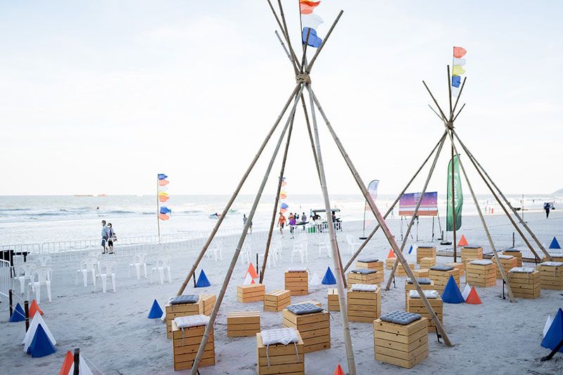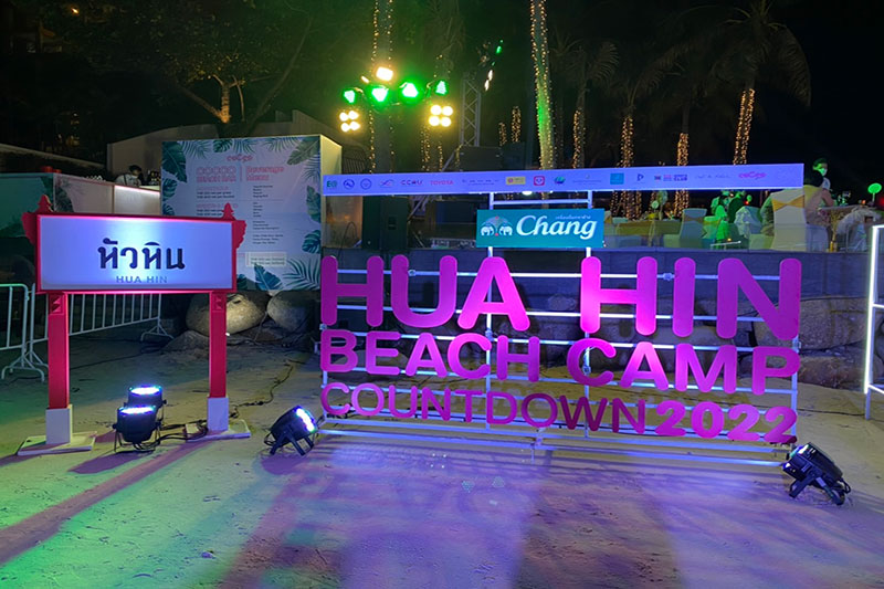สำหรับงาน “Hua Hin Beach Camp Countdown 2022 presented by Chang” เนรมิตรชายหาดหน้าโรงแรมอินเตอร์คอนติเนนตัล หัวหิน รีสอร์ท ให้เป็นจุดนั่งชิลล์รับลมหน้าหนาวริมทะเลในคอนเซปต์ “บีชแคมป์” ให้กลิ่นอายแห่งการเฉลิมฉลองช่วงวันหยุดแบบอบอุ่นกับครอบครัวและกลุ่มเพื่อน เริ่มต้นด้วยเสียงเพลงสนุกๆ จากฝีมือมิกซ์เพลงของดีเจย์ ให้พอขยับตัวโยกย้ายได้ พร้อมทั้งอาหารหลากหลาย จากสวนน้ำวานา นาวา วอเตอร์ จังเกิ้ล หัวหิน และฟู้ดแพนด้า ยกขบวนมาเสิร์ฟความอร่อยพร้อมกับเครื่องดื่มตราช้าง ในบรรยากาศแห่งความสุข และในเวลา 22.00 น. ก็ได้เวลาเข้าสู่ช่วงสำคัญกับไฮไลท์การแสดงพลุดอกไม้ไฟผสมผสานมัลติมีเดียสุดอลังการกลางทะเลหัวหิน ในชื่อชุด “The Moment of Hua Hin” พลุดอกไม้ไฟหลากหลายสีสัน ประกอบเสียงเพลง และแสง สี จำนวน 4 ชุด แต่ละชุดสะท้อนถึงโม้เมนท์แห่งความสุขต่างๆที่เกิดขึ้น ณ เมืองหัวหิน ยาวต่อเนื่องนานที่สุดในเมืองหัวหินกว่า 10 นาที และตบท้ายด้วยเพลงสนุกๆ จากดีเจย์อีกครั้งก่อนเข้าสู่ปี 2022