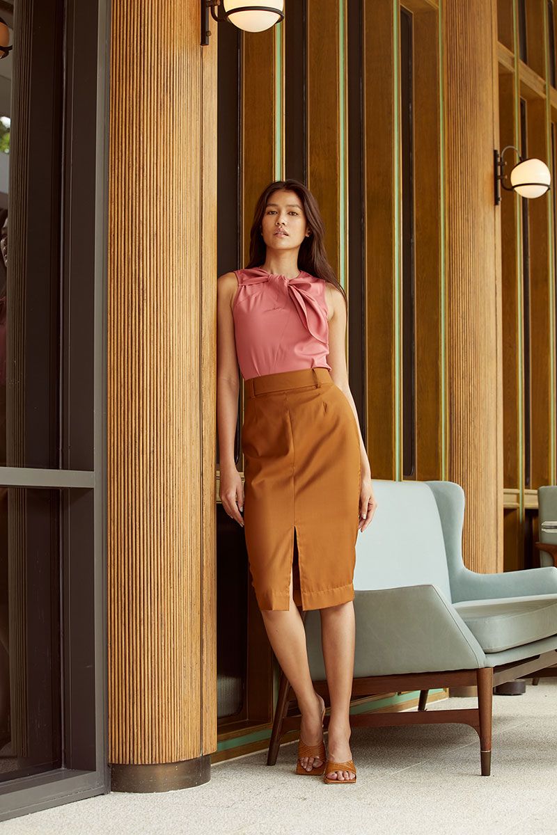 สำหรับคอลเลคชั่น “โอลด์ แกลมสวีทฮาร์ท” ทางทีมดีไซน์ได้หยิบยกเอาความ “Old glam” กลิ่นอายแห่งความสง่างามจากซิลลูเอทของเสื้อผ้าสุดคลาสสิกจากยุค 50 หลอมรวมเข้ากับ “Youngattitude” ความทันสมัยของโลกยุคปัจจุบันที่เต็มไปด้วยความสนุกสนาน ผ่านการใช้ลายพิมพ์กราฟิก ไปจนถึงรูปทรงเรขาคณิต โดยซิลลูเอทหลักของคอลเลคชั่นนี้คือ เสื้อผ้าที่มีกลิ่นอายของความวินเทจ และถูกออกแบบมาให้สวมใส่สบาย เพื่อตอบโจทย์ไลฟ์สไตล์การใช้ชีวิตของผู้หญิงยุคใหม่ที่ต้องการความคล่องตัว แต่เพิ่มความน่าสนใจด้วยเทคนิคการจับเดรป การทวิสต์เนื้อผ้า การจัดโบเข้ามาผสมผสานให้ชุดมีกลิ่นอายของความเฟมินีน อย่างชุดเดรสคอปกที่มีการจับเดรปบริเวณช่วงเอว หรือเสื้อแขนกุดผูกโบช่วงลำคอที่สามารถแมทช์กับกระโปรงคลุมเข่าเพื่อให้ได้ลุคทำงานที่มีความแคชชวลขึ้นรวมถึงชุดเดรสแขนกุดกระดุมหน้าสำหรับวันชิลล์ๆ หรือแมทช์กับแจ๊กเกตตัวสั้นก็จะได้ลุคสำหรับวันทำงานเช่นกัน