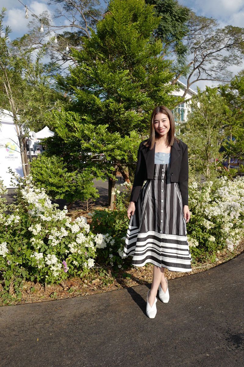 โดยทางทีมดีไซน์ได้เลือกใช้ผ้าลินินในการตัดเย็บเพื่อความสะดวกสบายในการสวมใส่ ประกอบกับเลือกใช้โทนสีที่มีความคลาสสิก อาทิ สีดำ สีขาว สีน้ำเงิน และสีน้ำตาล ตัดกับโทนสีพาสเทล ที่มีความสดใสอย่างสีชมพู และสีฟ้า เพื่อสร้างความสนุกให้กับชุด ซึ่งมาจากความตั้งใจของดีไซเนอร์ที่ต้องการส่งต่อพลังบวกให้กับผู้หญิงยุคใหม่ที่ต้องใช้ชีวิตในหลากหลายบทบาท
