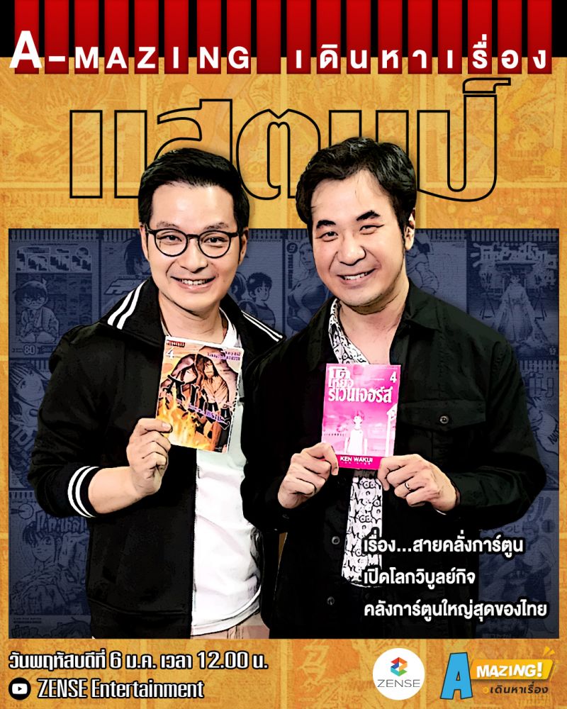 ห้ามพลาดความสนุกหรรษาที่จะทำให้คอการ์ตูนนักอ่านได้เพิลดเพลินทั้งหมดนี้ได้ในรายการ “A Mazing เดินหาเรื่อง” วันพฤหัสบดีที่ 6 มกราคมนี้ เวลา 12.00 น.ทางช่อง YouTube : ZENSE Entertainment