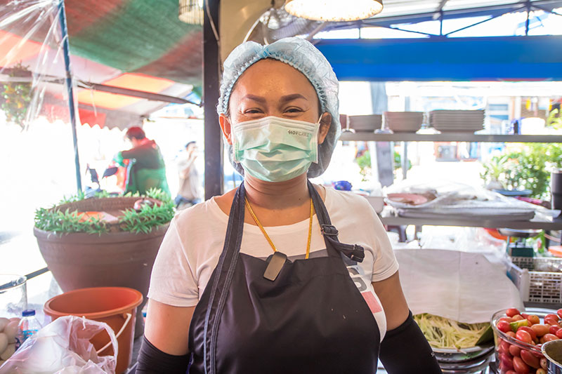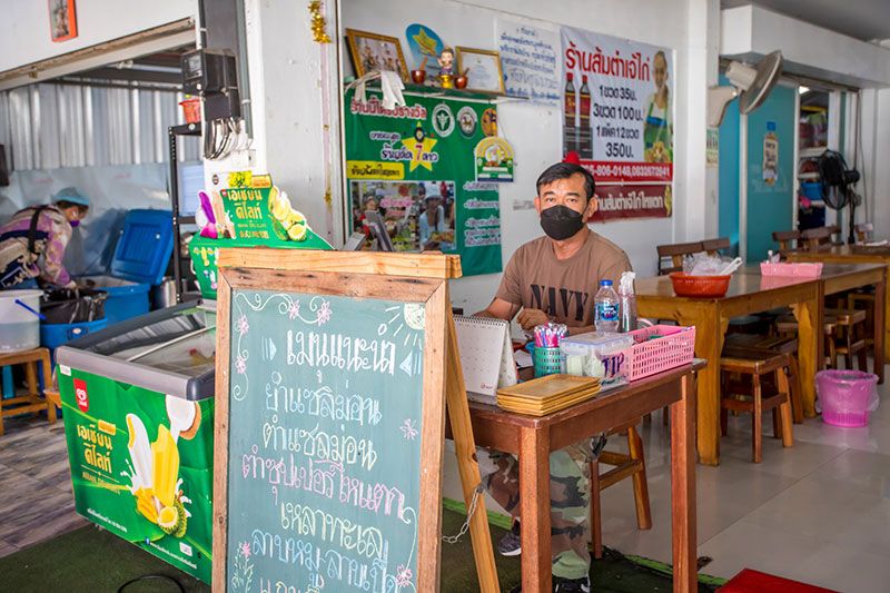 นางสาวไพรินทร์ กล่าวต่ออีกว่า ตอนนี้ลูกค้าก็เงียบลงกว่าเดิมเยอะมาก ซึ่งปรกติวันเสาร์ลูกค้าจะเต็มร้าน แต่ช่วงนี้ก็จะมีการสั่งผ่าน Grab กับ Line Man ทางร้านยังคงขายในราคาเดิม ส้มตำปูปลาร้า ตำไทย ยังขายที่ 60 บาท ส่วนตำทะเลก็อาจจะมีขึ้นราคาบ้างเล็กน้อย. 012