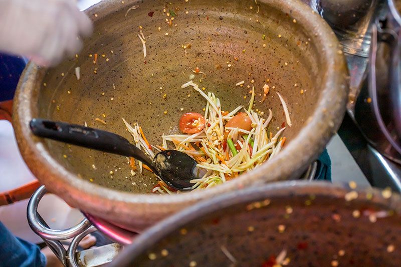 นางสาวไพรินทร์ เจริญสุข หรือเจ้ไก่ เจ้าของร้านส้มตำ ไหแตก เจ้ไก่ กล่าวว่า หลังจากที่วัตถุดิบหลักอย่ามะละกอขึ้นราคา ทางร้านก็ยังไม่ได้มีการปรับราคาส้มตำขึ้นแต่อย่างใด ยังขายในราคาเดิม ส้มตำปูปลาร้า ตำไทย ยังขายที่ 60 บาท ซึ่งสิ่งของเหล่านี้จะมีการปรับขึ้นราคาในทุกปี แต่ในปีนี้อาจจะมีการปรับราคาที่แพงขึ้นมาก เนื่องจากน้ำมันแพง ทำให้การขนส่งก็แพงขึ้น ซึ่งก่อนหน้านี้ราคามะละกอ 10 กิโลกรัม ถุงละ 150 บาท แต่ช่วงเทศกาลมีการปรับตัวถือว่าแพงที่สุดในราคาถุงละ 320 บาท แต่ตอนนี้ก็ปรับราคาลงมาเหลือ 200 บาท ซึ่งก็ถือว่ามะละกอยังมีราคาที่แพง