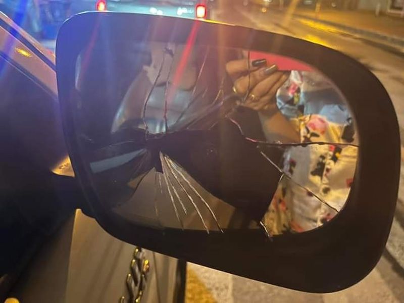ก่อนถึงตลาดแม่กิ้มส้องมีผู้ชายยืนอยู่เกาะกลาง ระหว่างแฟนหนูขับมา มันจับสิ่งของบางอย่างเขวี่ยงมาที่รถ ดีที่แฟนหนูหลบทัน แต่น้องชายที่ขับตามหลังมาโดนผู้ชายคนนั่นฟาดมาที่รถด้วยไม้หรืออะไรไม่รู้มองไม่ชัดโดนกระจกมองข้างแตก