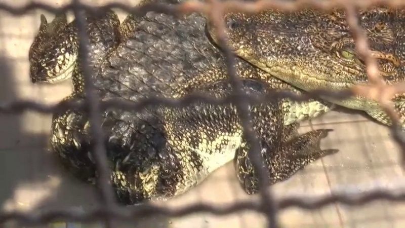 พบจระเข้หางกวัก 4 ตัวเลี้ยงอยู่ในบ่อปูนหน้าทศชาติฟาร์ม อำเภอแสวงหา จังหวัดอ่างทอง เจ้าของเชื่อเป็นสัตว์นำโชคลาภมาให้คนเลี้ยง เผยดังไกลถึงต่างแดนมีคนมาขอซื้อในราคา 2 แสนแต่ไม่ขาย
