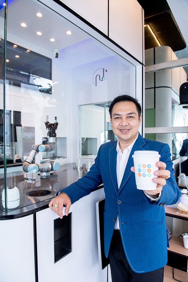 ส่วนการนำนวัตกรรมด้านเทคโนโลยี AI เข้ามาสร้างสีสันในร้านกาแฟ มองว่าในต่างประเทศมีมานานแล้ว แต่ในประเทศไทยยังเป็นสิ่งใหม่และยังพัฒนาต่อยอดได้อีกมาก เลยเกิดไอเดียรีโนเวทจากร้านกาแฟ ณ บวร เดิมที่มีจุดเด่นในเรื่องกาแฟคุณภาพ ท่ามกลางบรรยากาศไทยประยุกต์สมัยรัชกาลที่ 5 พร้อมโชว์ศักยภาพของคนไทย เข้ากับแรงบันดาลใจยุคใหม่แบบร่วมสมัย ที่ยังคงรักษาเอกลักษณ์สถาปัตยกรรมอันทรงคุณค่าในสมัยรัชกาลที่ 5 กว่า 100 ปี ไว้โดยไม่เปลี่ยนแปลงใดๆ มาเป็นร้าน na bowon ROBO X CAFÉ ในขณะนี้”
