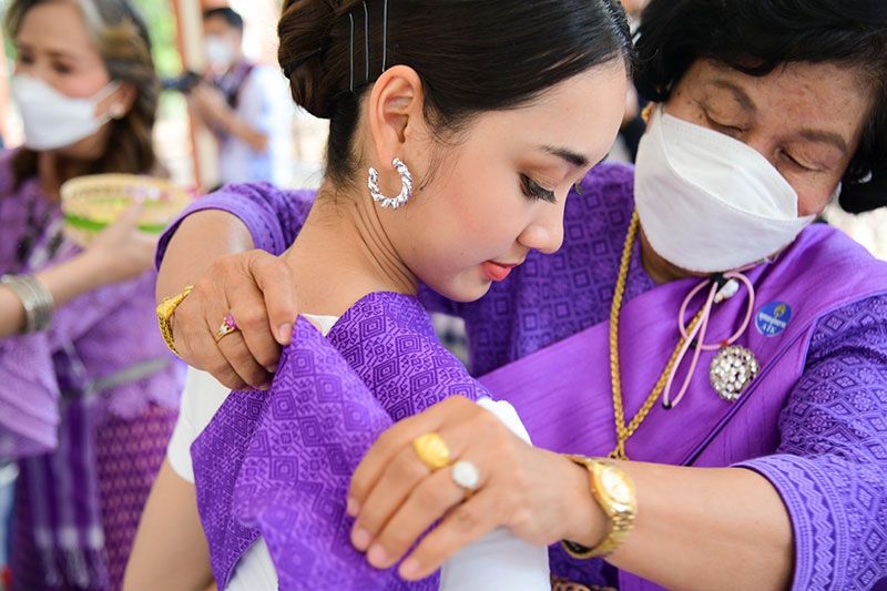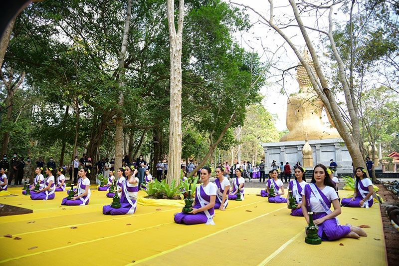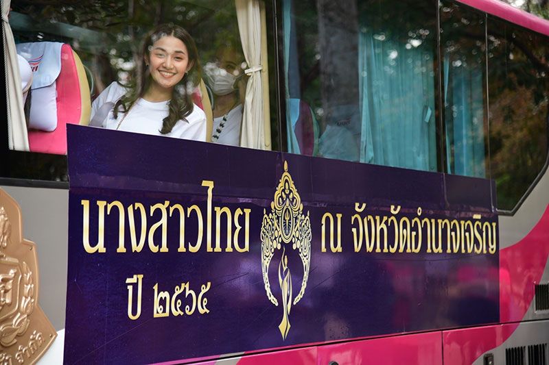 22 มกราคม 2565 เหล่าสาวงามจากเวทีการประกวดนางสาวไทย ประจำปี 2565 ได้ออกเดินทางสู่จังหวัดอำนาจเจริญ เพื่อเก็บตัวและทำกิจกรรมเสริมสร้างศักยภาพ รวมถึง CSR ให้กับท้องถิ่นอีสานอีกด้วย โดยในวันนี้สาวงามทั้ง 24 คน ได้เดินทางด้วยสายการบินนกแอร์ เที่ยวบิน DD320 ถึงอำนาจเจริญในช่วงสาย และได้เข้าเช็คอินโรงแรมฝ้ายขิด ที่พักเพียงใจ กลางอำเภอเมืองอำนาจเจริญ ที่เพียบพร้อมไปด้วยห้องพักอันหรูหรา สะดวกสบายระดับอินเตอร์ เติมกำลังด้วยอาหารอร่อย ๆ ที่ร้านเถียงนา คาเฟ่สุดชิกริมทุ่งนาก่อนจะลุยกิจกรรมกัน ทั้งเดินทางไปสักการะพุทธอุทยานพระมงคลมิ่งเมือง สิ่งศักดิ์สิทธิ์คู่เมืองอำนาจเจริญ ต่อด้วย การร่วมขบวนแห่และนางรำหน้าองค์พระใหญ่ ปิดท้ายด้วยงานเลี้ยงต้อนรับ “ยินดีฮับตอนออนซอนนางสาวไทย” ในบรรยากาศแสนอบอุ่น