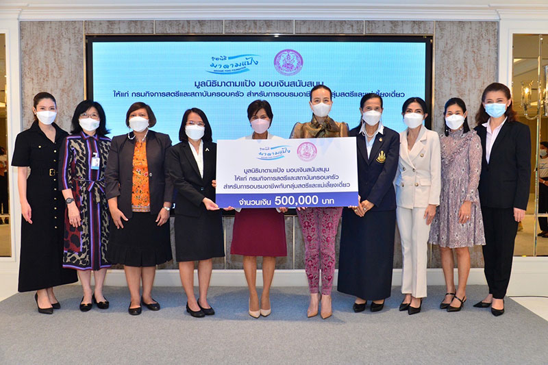 นางจินตนา จันทร์บำรุง อธิบดีกรมกิจการสตรีและสถาบันครอบครัว กระทรวงการพัฒนาสังคมและความมั่นคงของมนุษย์ กล่าวว่า “เราได้ร่วมงานกับมูลนิธิมาดามแป้งมาแล้ว ในการสนับสนุนทุนประกอบอาชีพแม่เลี้ยงเดี่ยว เมื่อปี 2564 ที่ผ่านมา จึงมองว่าจะเป็นเหมือนจุดเริ่มต้นที่ดีต่อเนื่อง ในการเปลี่ยนชีวิตของแม่เลี้ยงเดี่ยวหลาย ๆ คน ที่ประสบความยากลำบาก ในการครองชีพ การดูแลตนเองและครอบครัว ซึ่งการสนับสนุนจากมูลนิธิฯ นั้นไม่ใช่แค่เรื่องของเงินทุนอย่างเดียว แต่การให้ในทุกครั้ง ถือว่าเป็นเรื่องที่เสริมสร้างกำลังใจ เสริมสร้างความเข้มแข็ง ด้วยการส่งต่อความปรารถนาดี ให้แก่ครอบครัวของแม่เลี้ยงเดี่ยว สามารถใช้ชีวิตอยู่ได้ด้วยตัวของเขาเอง”