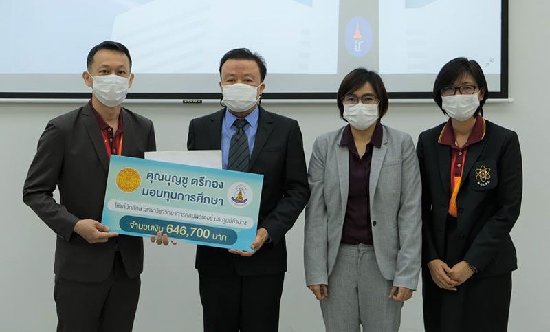 เป็นผู้ให้และผู้สร้างคุณูปการอย่างสูงแก่มหาวิทยาลัยธรรมศาสตร์มาอย่างต่อเนื่อง บุญชู ตรีทอง อดีตรัฐมนตรีว่าการทบวงมหาวิทยาลัยและผู้มีอุปการคุณของมหาวิทยาลัย ให้เกียรติเป็นประธานในพิธีมอบทุนการศึกษาประจำปี 2564 ให้กับนักศึกษาสาขาวิชาวิทยาการคอมพิวเตอร์ คณะวิทยาศาสตร์และเทคโนโลยี มหาวิทยาลัยธรรมศาสตร์ ศูนย์ลำปาง พร้อมด้วย รศ.ดร.สุปรียา แก้วละเอียด รองอธิการบดีฝ่ายบริหารศูนย์ลำปางและกฎหมาย, รศ.ดร.ณัฐธนนท์ หงส์วริทธิ์ธรคณบดีคณะวิทยาศาสตร์และเทคโนโลยี, ผศ.ดร.วรวรรณ ดีอัซ การ์บาโย ผู้ช่วยคณบดีฝ่ายบริหารทั่วไป ศูนย์ลำปาง คณะวิทยาศาสตร์และเทคโนโลยี ร่วมในพิธีมอบทุนการศึกษา ณ มหาวิทยาลัยธรรมศาสตร์ ศูนย์ลำปาง เมื่อวันที่ 22 มกราคม 2565